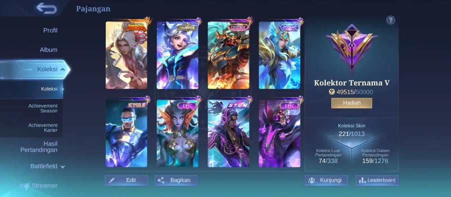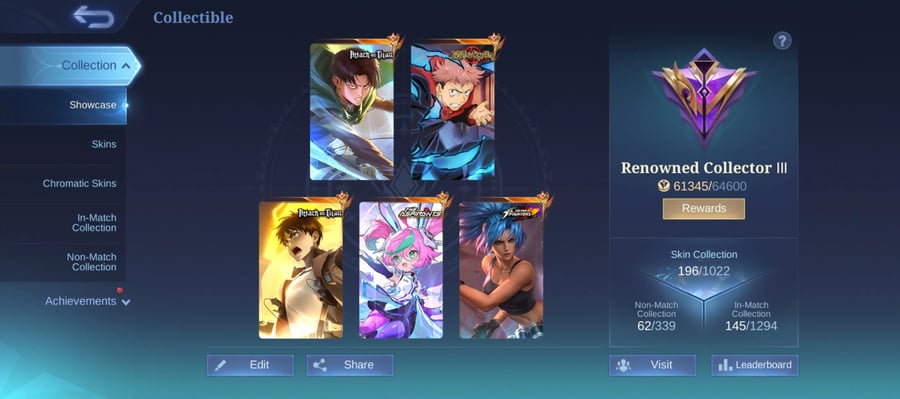 MC49|LV127|MEGA COLLECTOR III|539 SKIN|3 LEGEND|SASUKE,NARUTO|JULIAN KURAPIKA|NEOBEAST LING|BADANG GOLD SEIYA|LANCELOT KISHIN|ARGUS STARWARS|2 ASPIRANTS