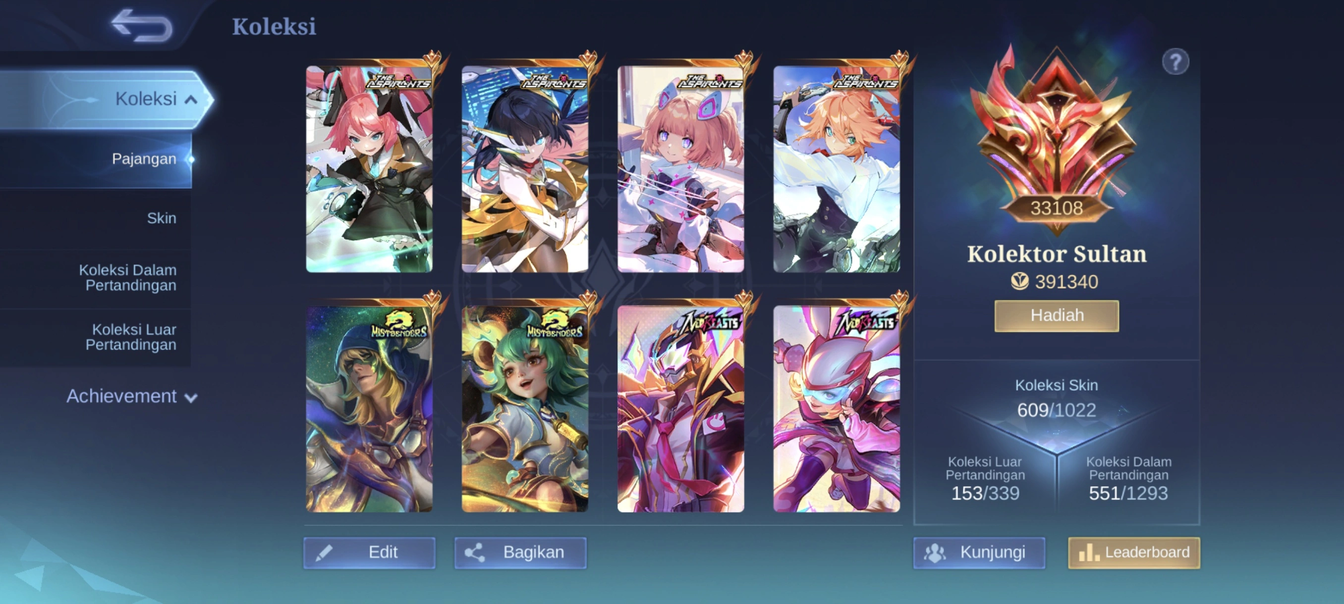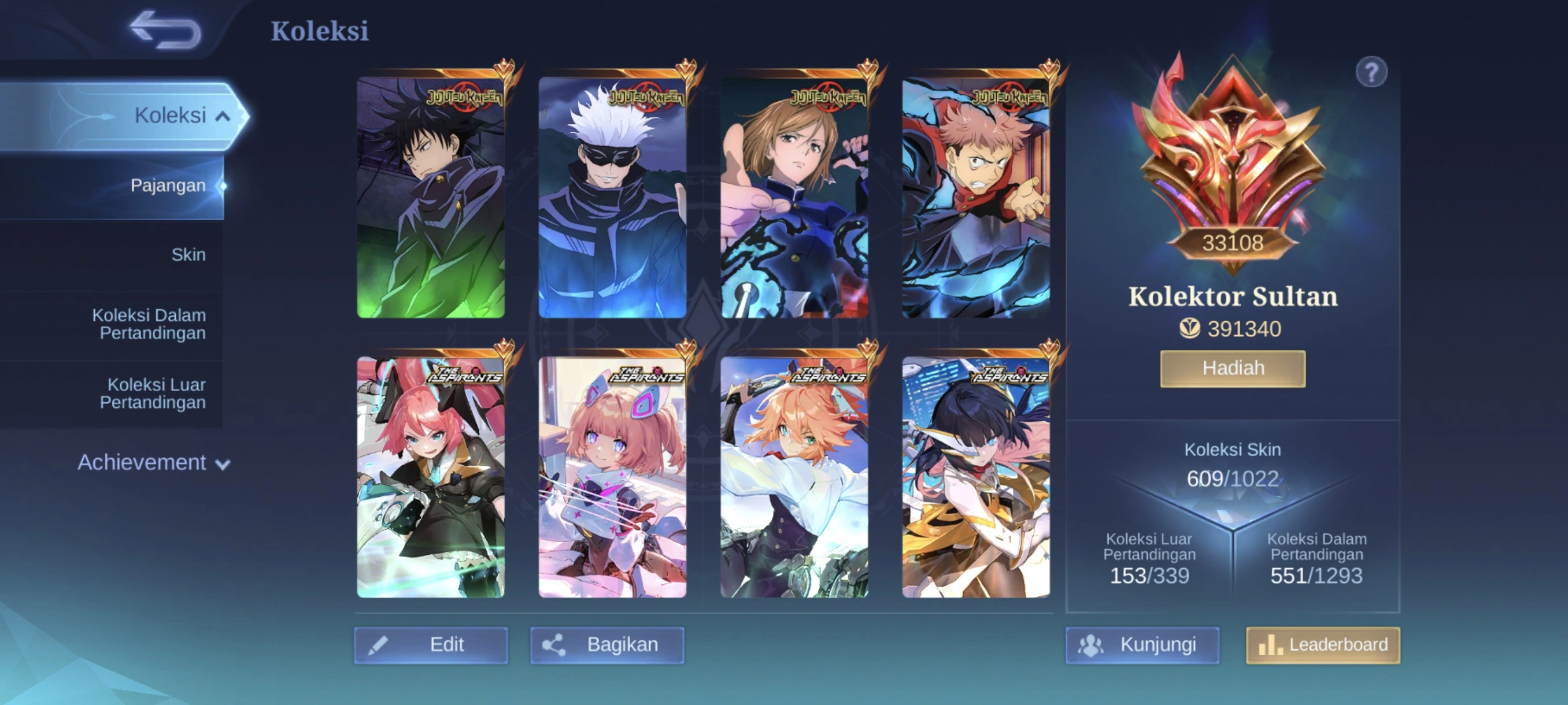 MM295|Lv105|609Skin|WORLDCOLLECTOR33108|TeslaTower|9LEGEND|FULL MISTBENDERS|7KOF|FULL ASPIRANTS|FULL JJK|AOT Eren|FULL TRANSFORMERS|FULL SANRIO|15COLLECTOR