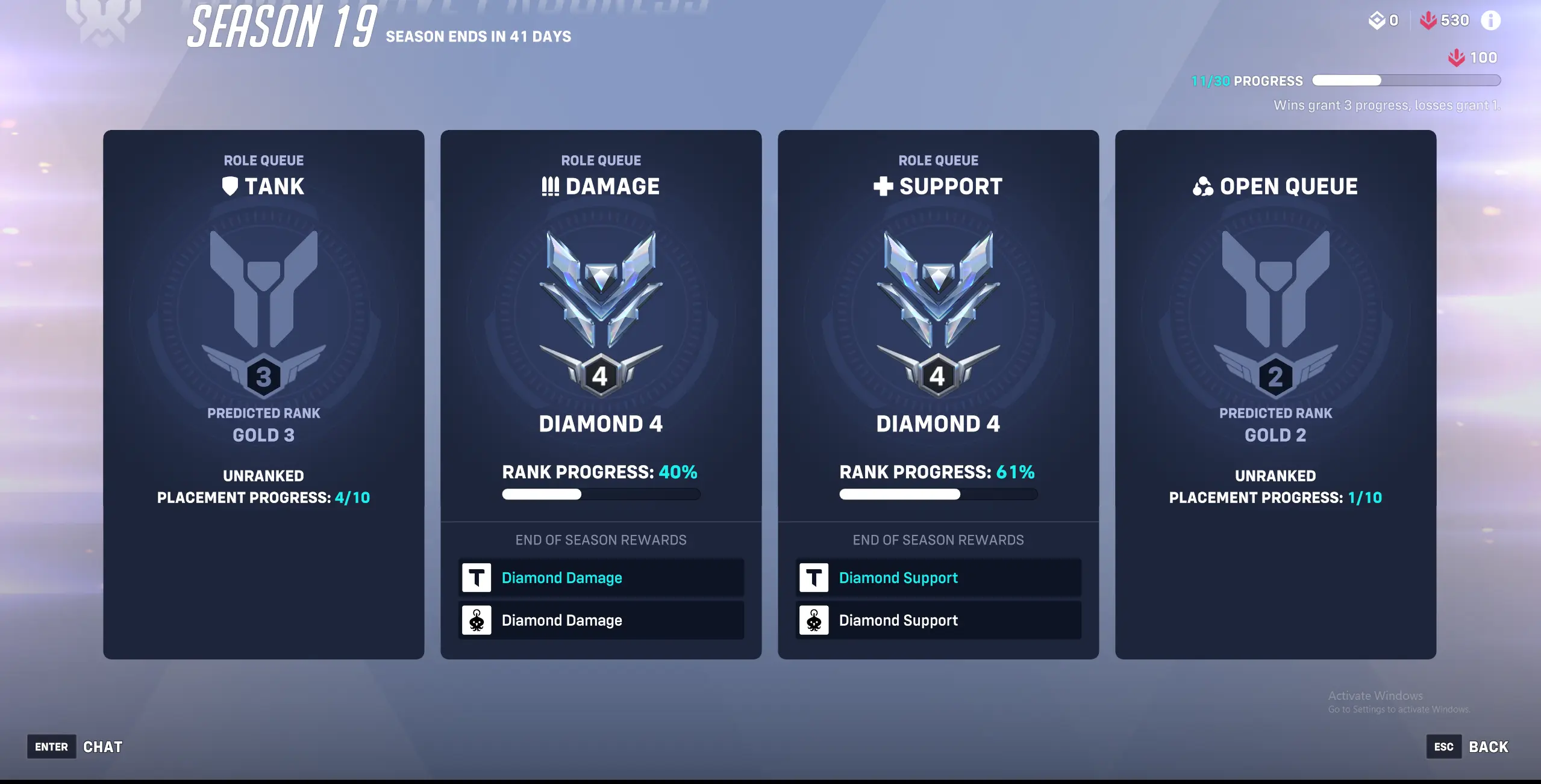 [Season 19] ✔ Double Diamond✔ [Diamond Dps + Support] [Endorsement 2 ⸱ Level 89]✔ [placement Finished]✔Instant ✔ Name changeable ✔ All Heroes Unlocked ✔ HandLeveled ✔ two rolls Diamond