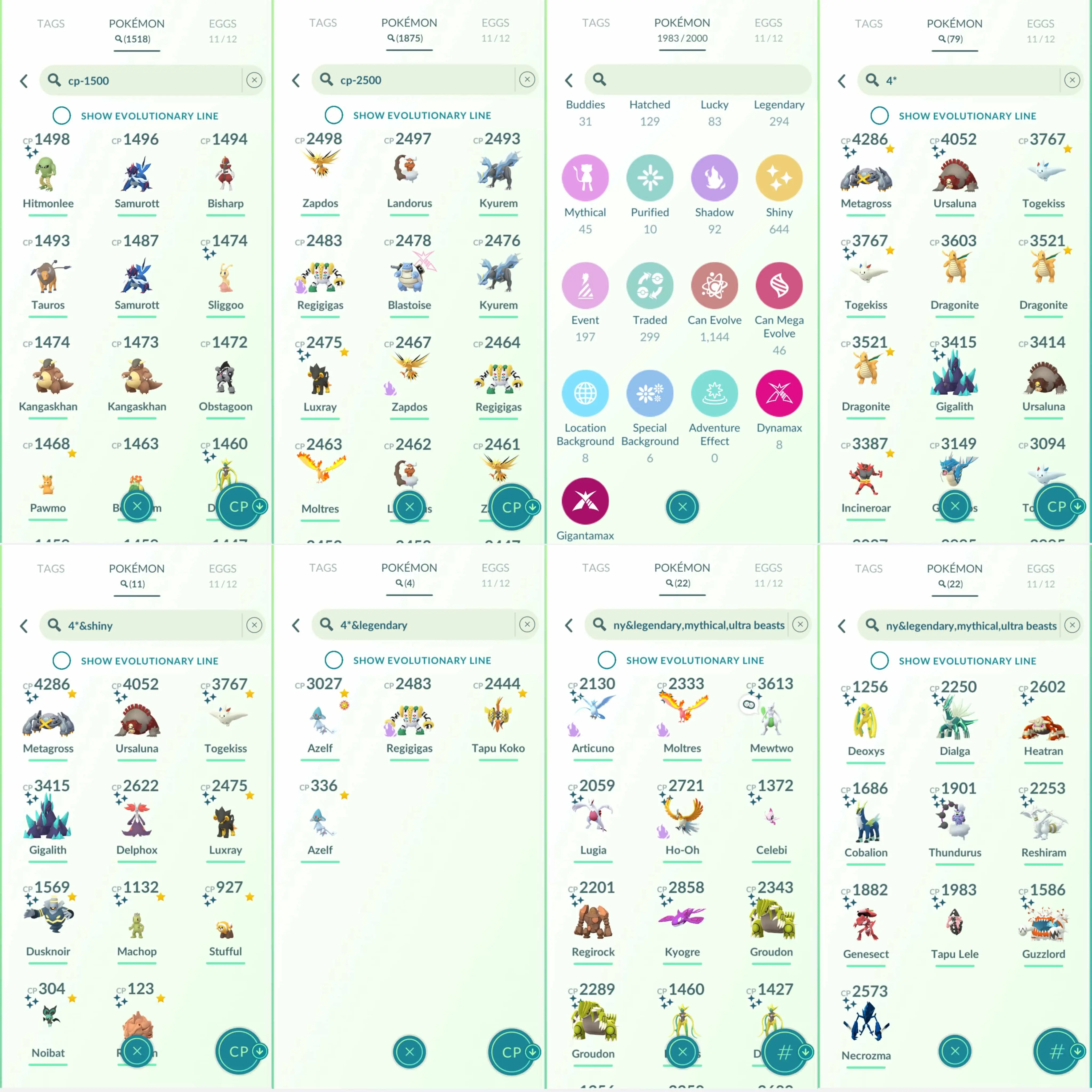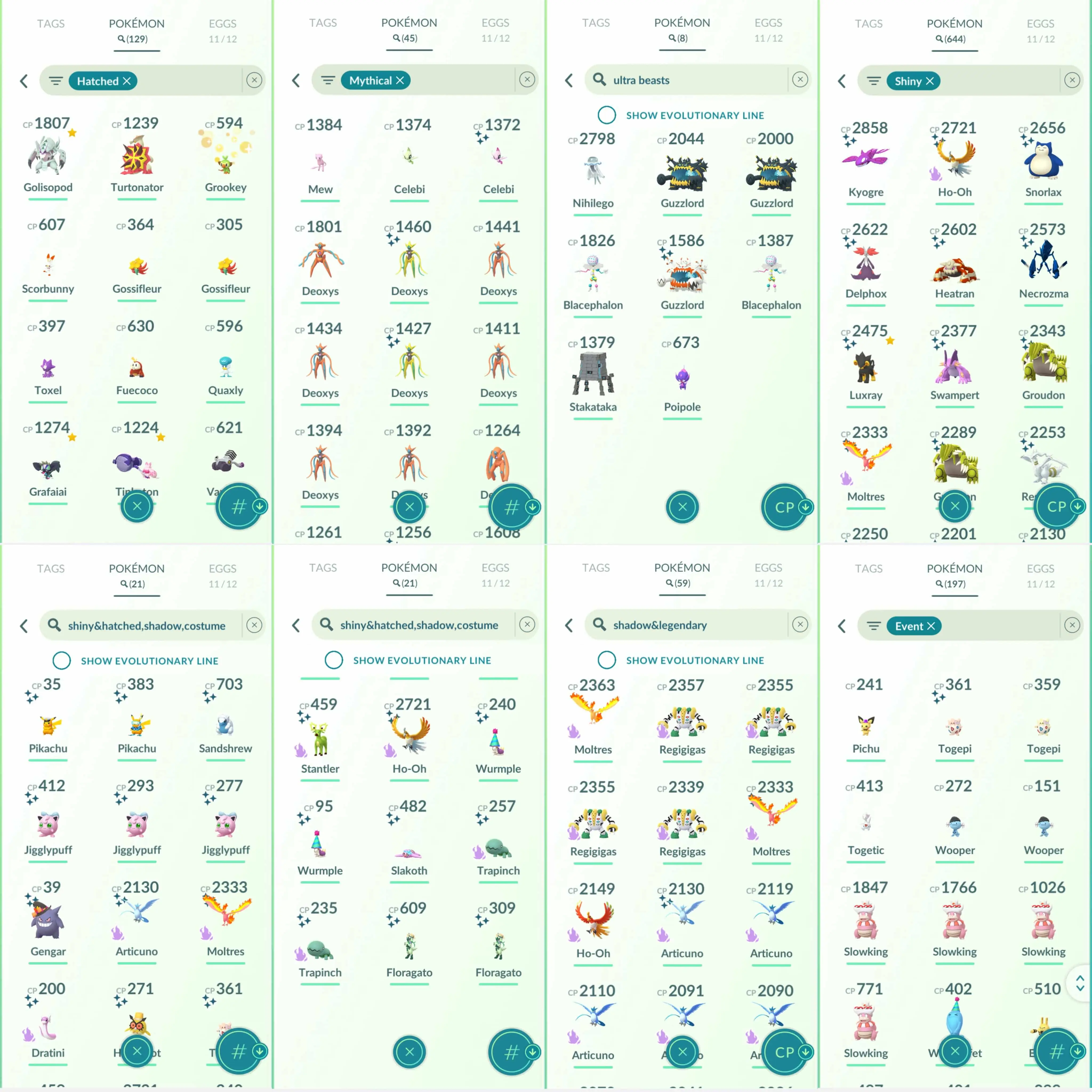 Shiny: Mewtwo, Mega Lucario, Primal Groudon, Primal Kyogre, Celebi, Lugia, Genesect, Deoxys ATK+DEF, Guzzlord, Necrozma, shadow articuno, shadow moltres, shadow ho-oh, regirock, dialga, heatran, cobalion