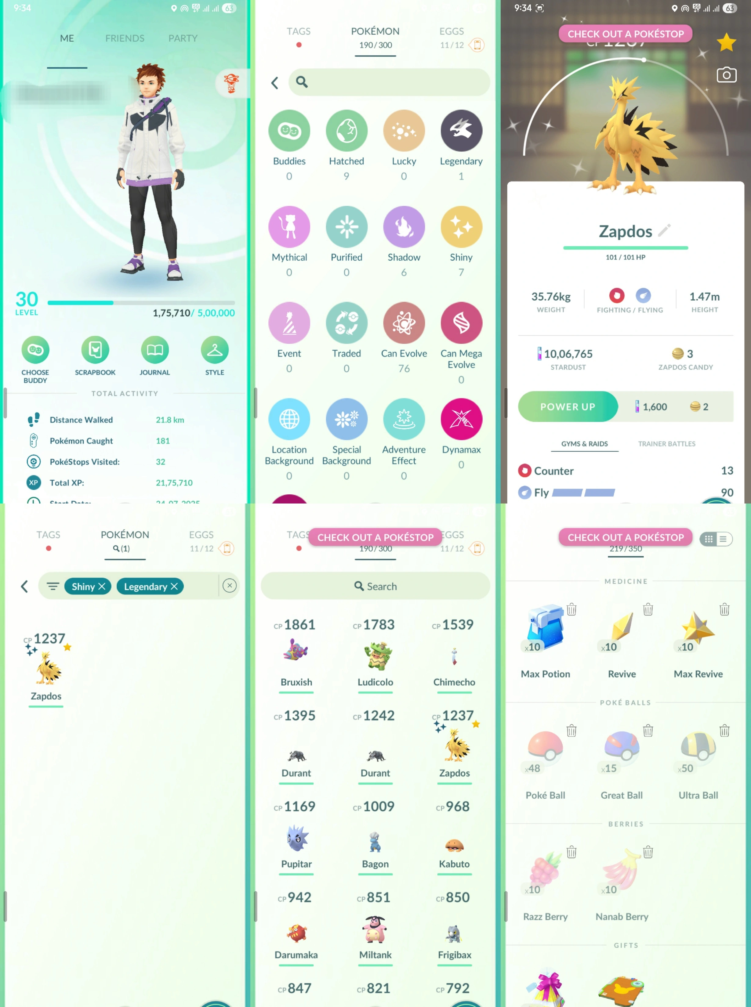 [1M+STARDUST]-[SHINY GALARIAN ZAPDOS (TRADABLE)] 30 NO TEAM | 1+LEGENDRY | 190 MONS