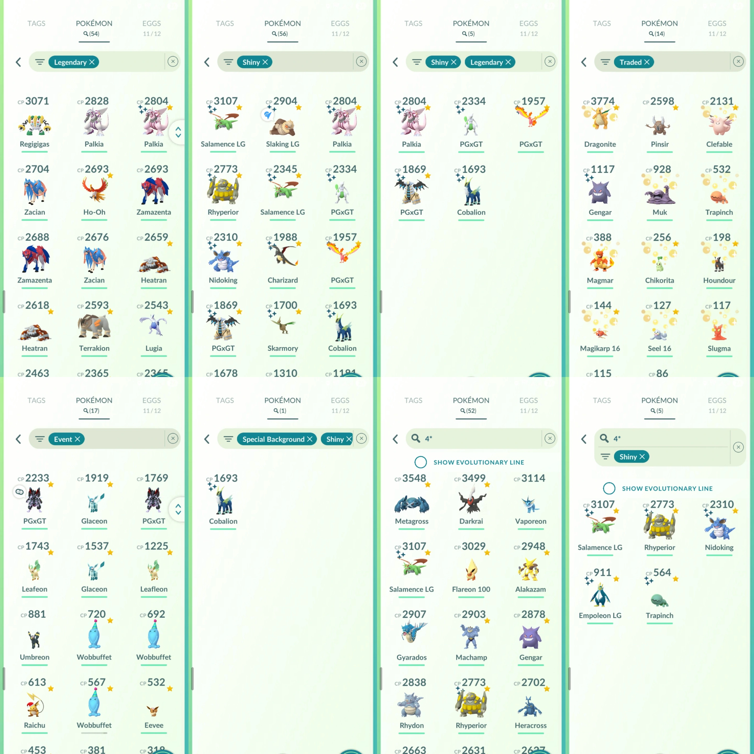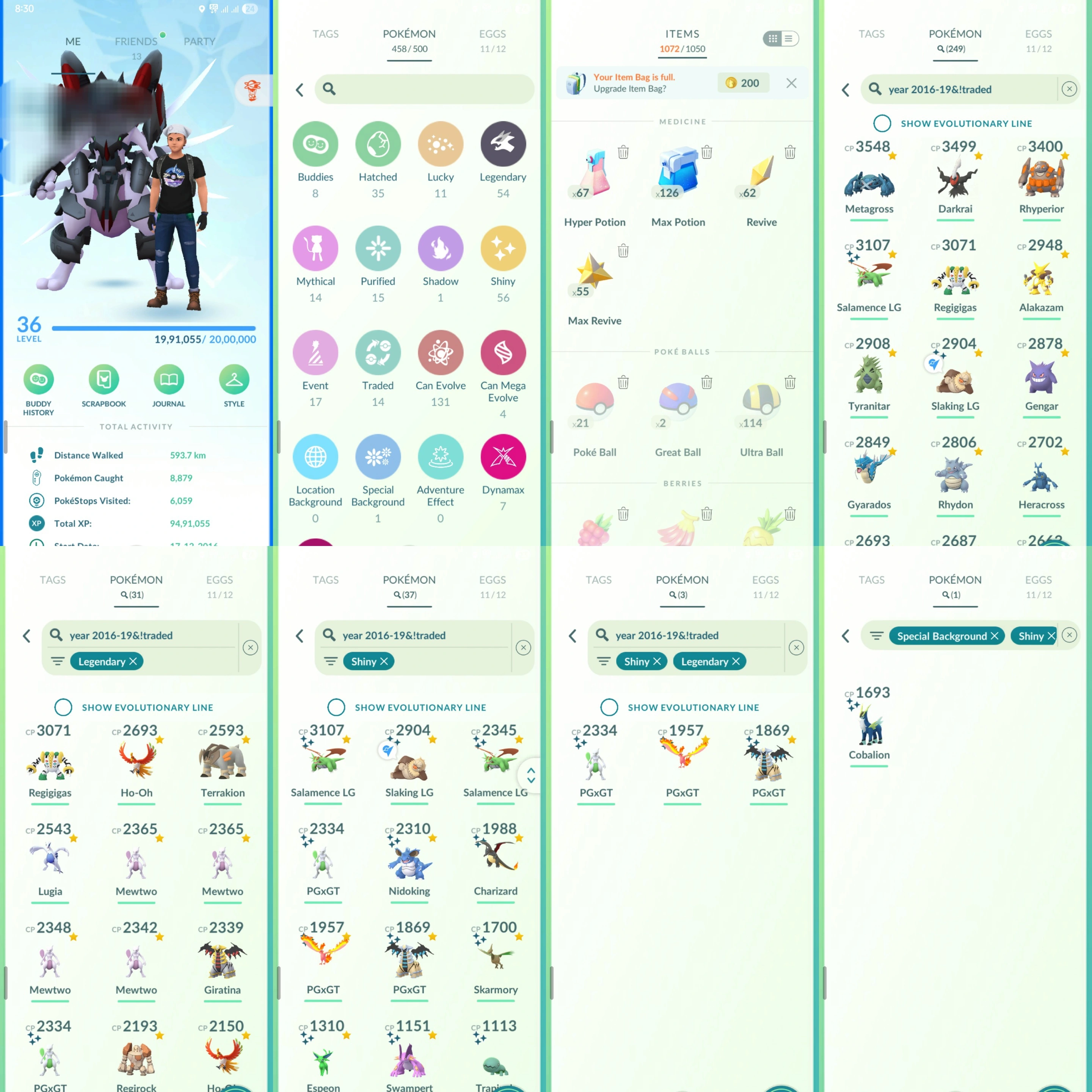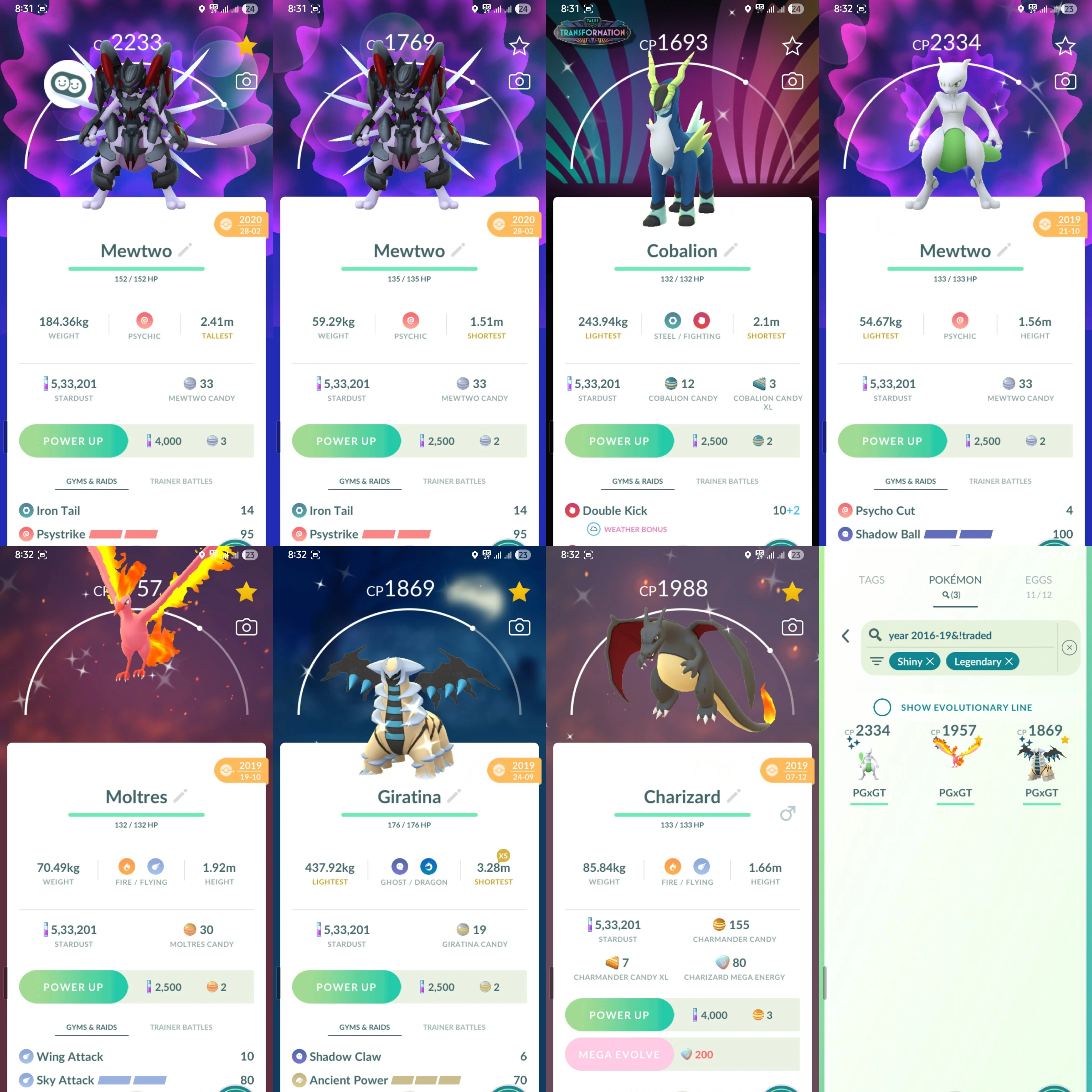 [2*ARMORED MEWTWO, 2019*SHINY (MEWTWO, GIRATINA, MOLTRES, CHARIZARD), SHINY SPECIAL BG COBALION, 240+2016-19 MONS, 30*LEGENDRY 2016-19] 54+LEGENDRY