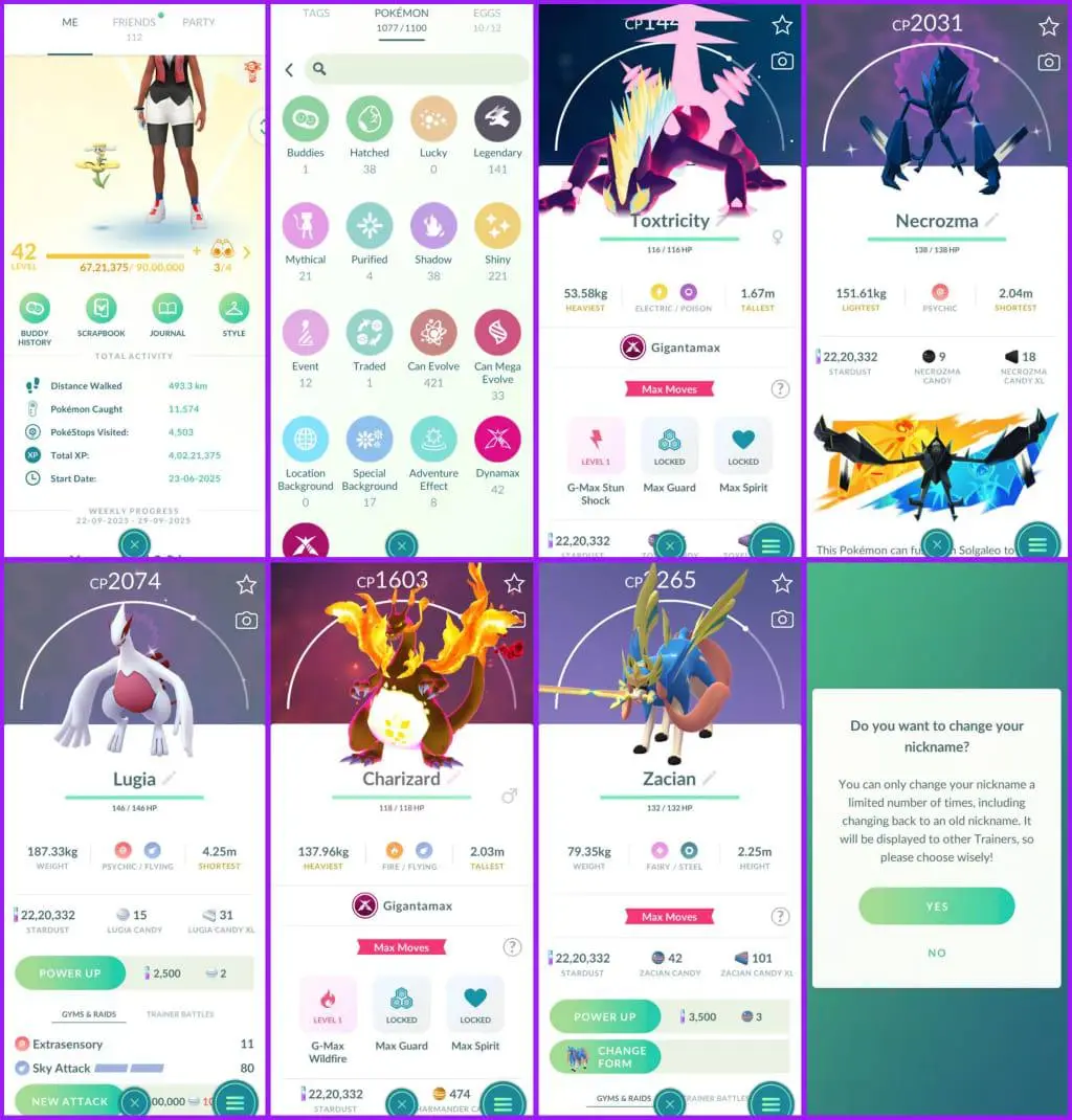 LEVEL 42(INSTINCT)🔥1077/1100 Pokemon🔥221 Shiny🔥141 Legendary🔥G-Max Charizard🔥Fusion Zacian🔥Shiny Lugia🔥Name Change Available🔥Instant Delivery