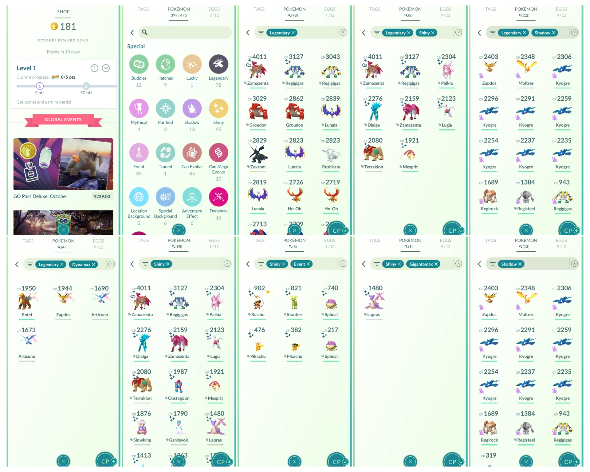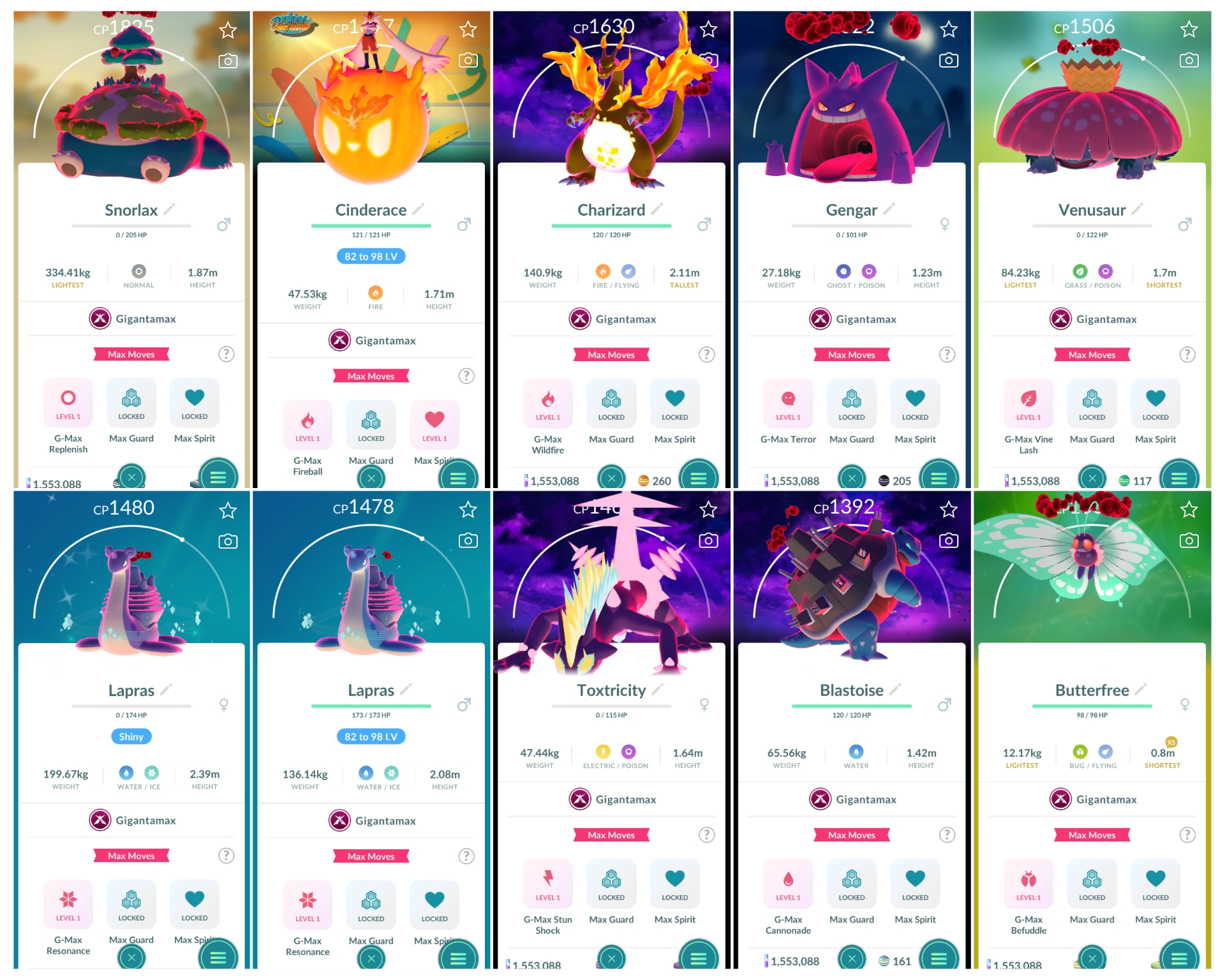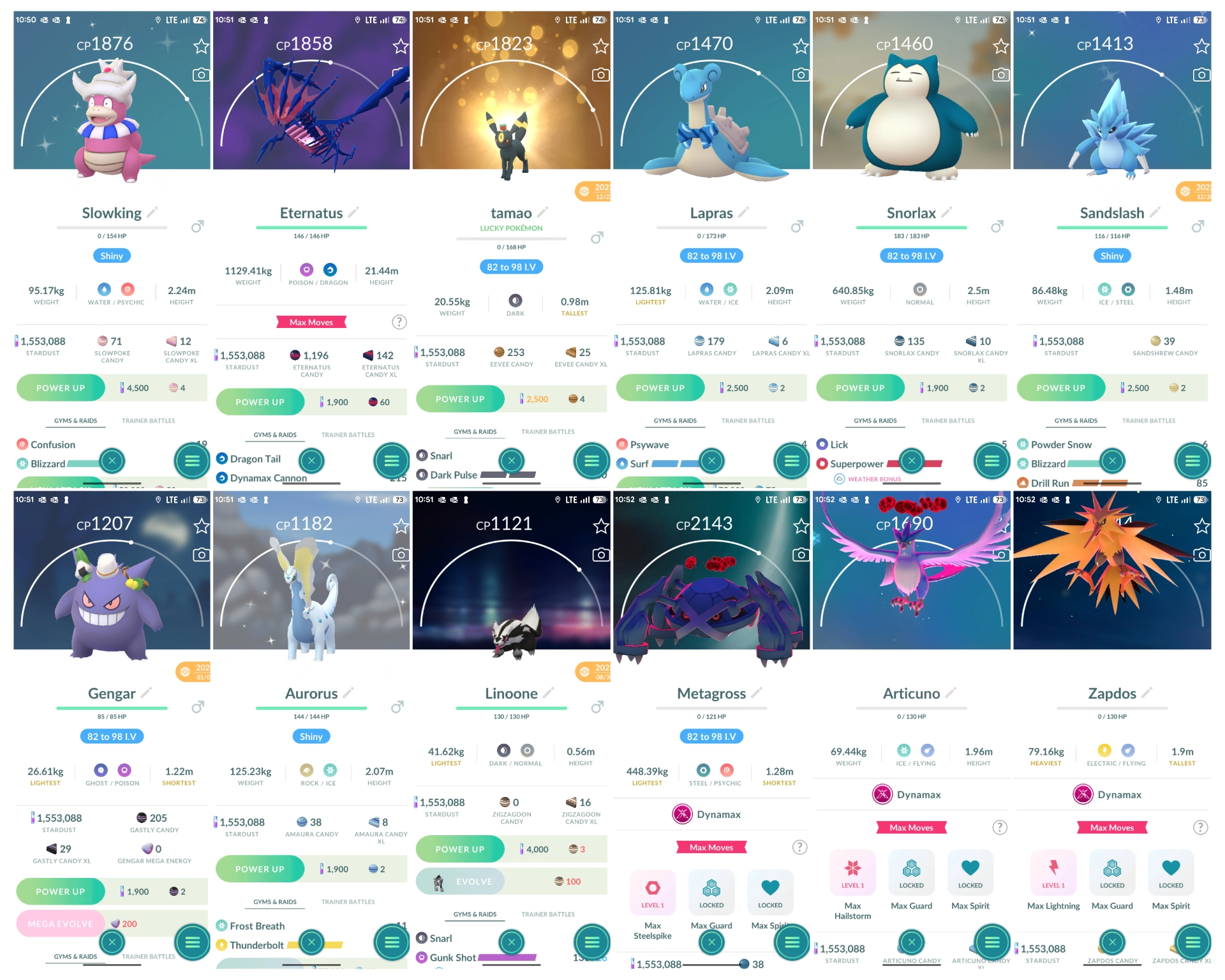 ⚡ Level 46 • 2022 Creation 🎯 95 Shiny • 78 Legendary • 8 Shiny Legendary 🌈 Shiny GMax Lapras • 6 Special BG ✨ 17 DMax • 18 GMax • 32 Perfect iV100 💎