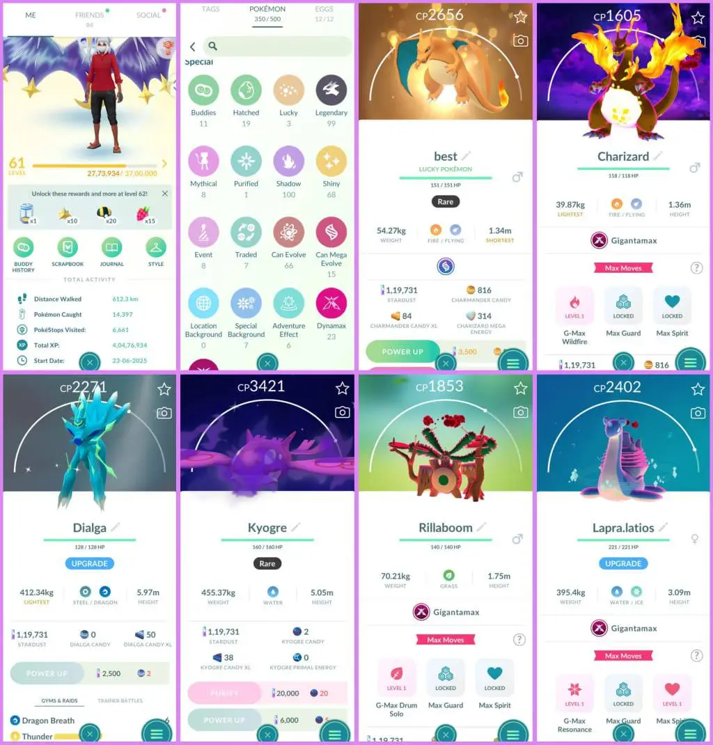 LEVEL 61(INSTINCT)🔥350/500 Pokemon🔥99 Legendary🔥100 Shadow🔥68 Shiny🔥G-Max Charizard🔥Shiny Kyogre🔥Lucky Charizard🔥Name Change Available🔥Instant Delivery