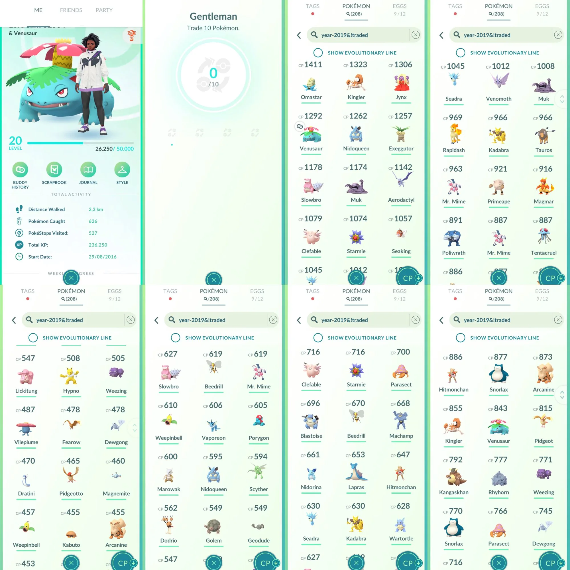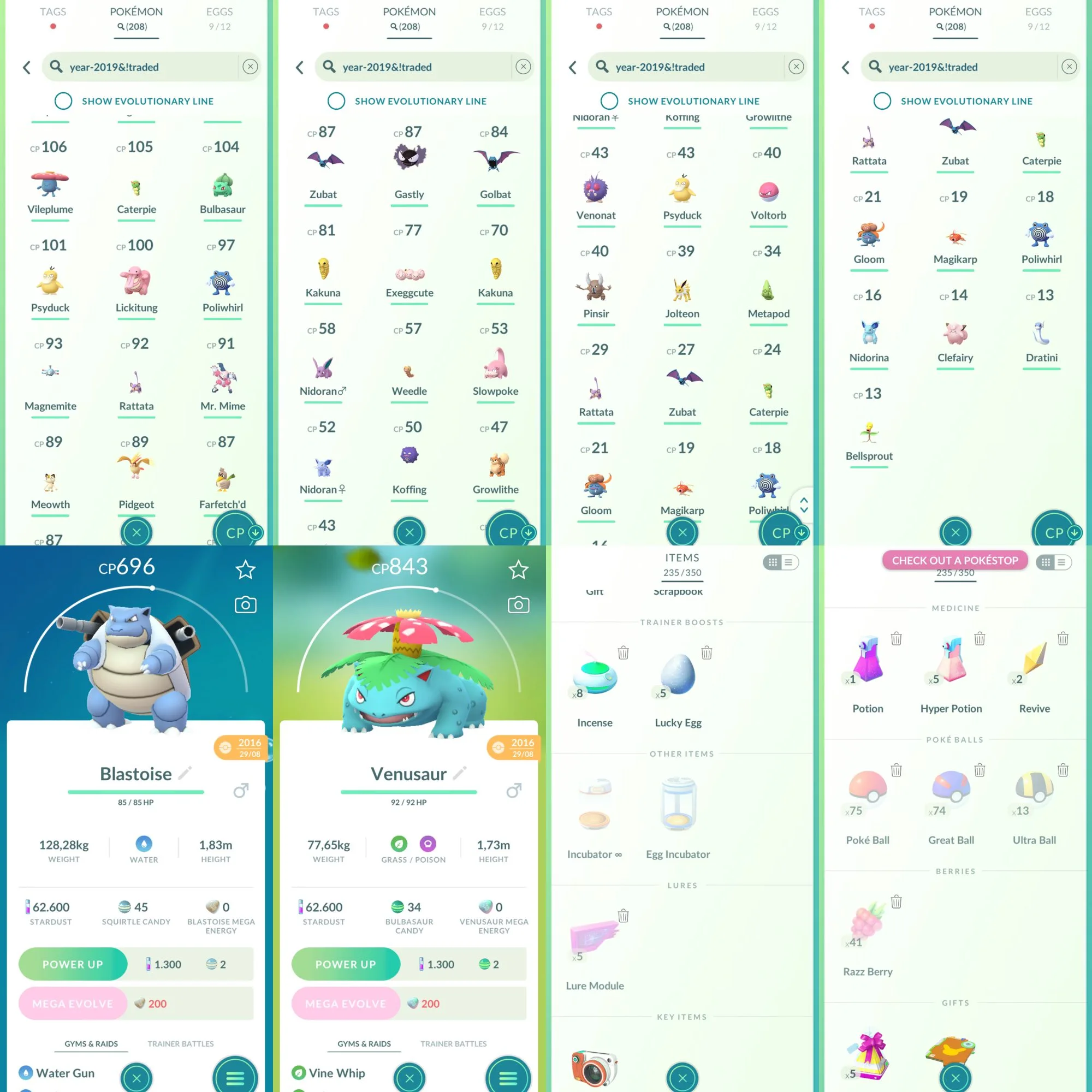 Old 2016 Level 20+ -208 Old pokemon can trade lucky-Full 35 Slot Lucky trade ready-62K+ Stardust-Many old Kanto