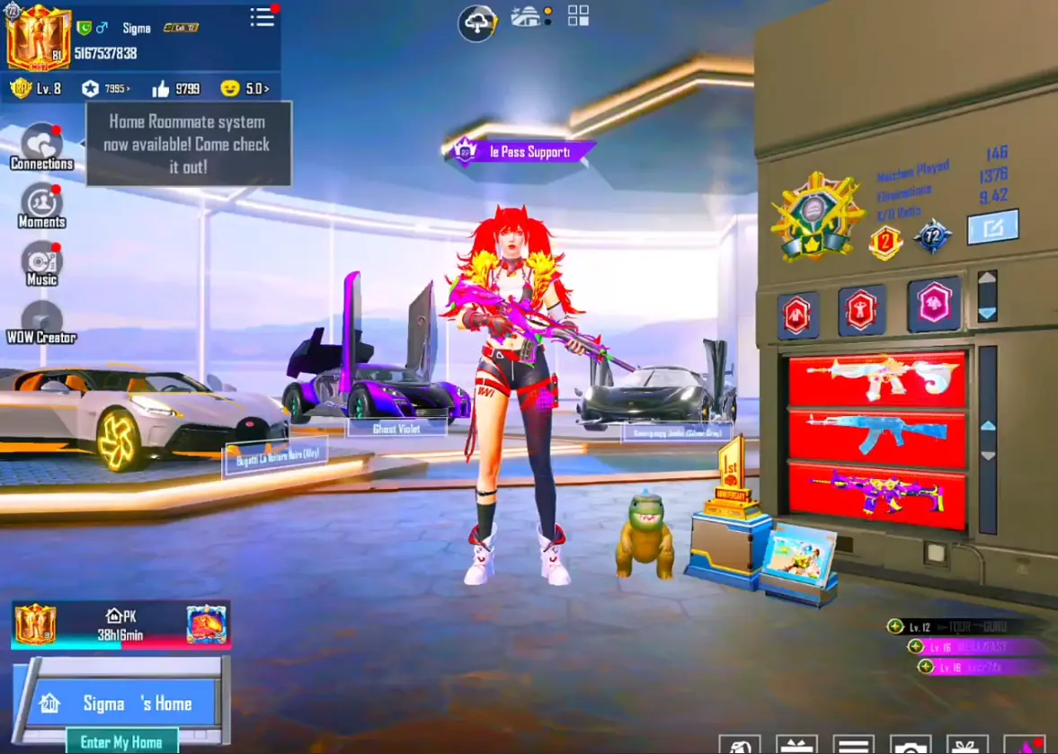 7x SPORT CARS | POSEDIONS X-SUIT (4-STAR) x AVALANCHE X-SUIT (4-STAR) | 2x MYTHIC LOBBY THEME | M416 IMPERIAL MAXED OUT | AKM THE GALCIER MAXED | SCARL DROP BASS MAXED | MYTHIC FASHION 164/300