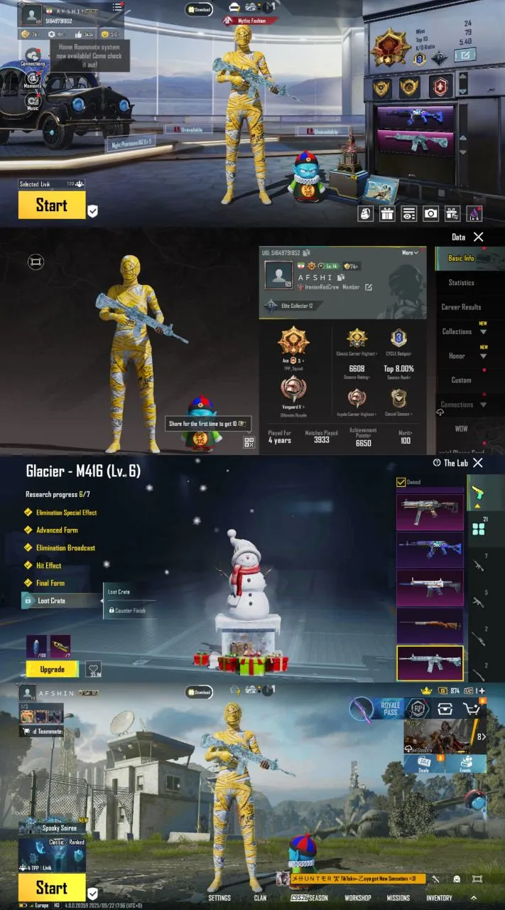 iOS Android 🔥 Level69 🎯 Set Yellow Mummy And M416 Glacier lvl6 🤩 Skin High 🧨 Rank Ace 🌟 Dans Good 💲 Code464