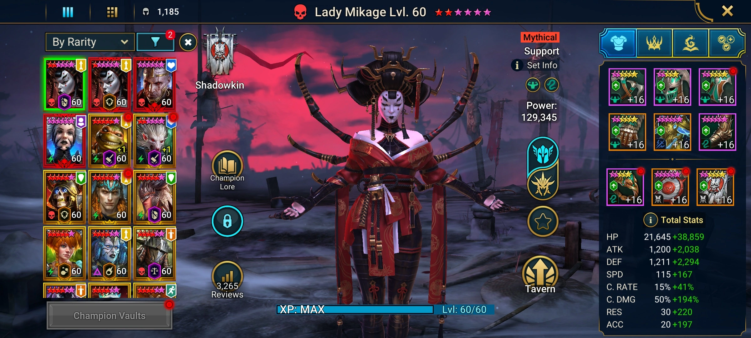 [4 Mythical Champions][9.24M] Lady Mikage x2,Krixia,Embrys + 103 LEGENDARY (Siphi 415+Rotos,Lamasu,Yncensa,Tuhanarak,Tormin,Arb,Mith,Yakarl,Harima x2,Fabian,R.N.Archer(5*),Thor,Ragash x2,Eostrid,Hephraak,MK,Searsha,Pythion,Staltus,Freyja...) + 1k UNM