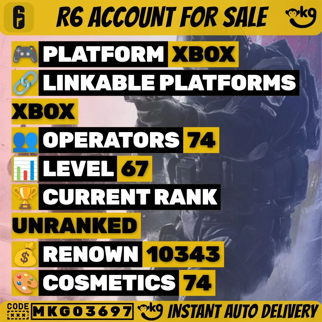 🎯 【 XBOX 】 Level 67 ✅ 3 BLACK ICE + 71 SKINS + Unranked ✅ 74 OPERATORS + 💰 10,343 Renown + ⚡ Ready Ranked + 🔑 Full Access !MKG03697
