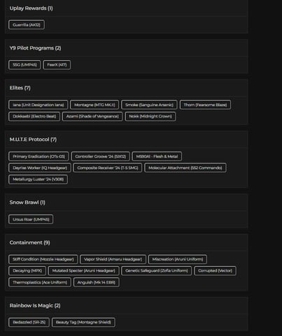 [UPLAY] 248 LVL ⸱ 40X GLACIER ⸱ 3X GRADE ⸱ 4X GOLD DUSTS ⸱ 32X BLACK ICES ⸱ 20X UNIVERSALS ⸱ 29X SEASONALS ⸱ 16X ELITES ⸱ 16 BETA ICONS ⸱ 67 OPERATORS ⸱ 54K RENOWN ⸱ FA