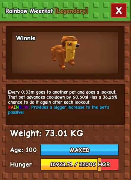 🌈🦦 TITANIC Rainbow Meerkat (73 KG) 100 Maxed Age🌌 – FAST DELIVERY! 🚀