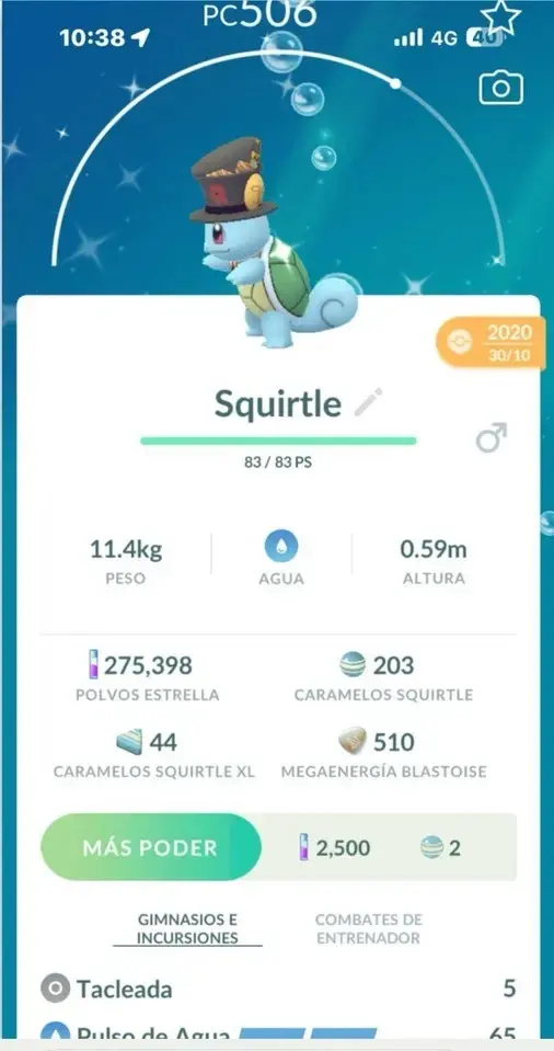 Pokemon Trade Go - Shiny Squirtle Top Hat ( Halloween Yamask Costume ) - Trade 1mil or 20k stardust You must:
