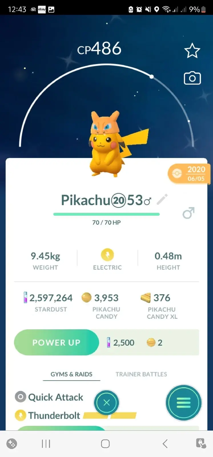 Shiny Pikachu Costume Charizard Hat- T r a d e Go