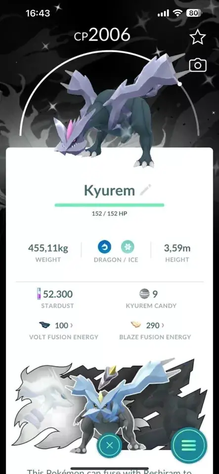 POKEMON GO - Shiny Kyurem- Black Background Unova - Rare-Trade 1mil or 20k Stardust