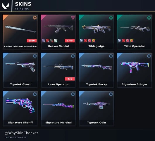 👑 [Europe] ⸱ 11 Skins | Radiant Crisis 001 Baseball Bat | Reaver Vandal | Topotek Ghost