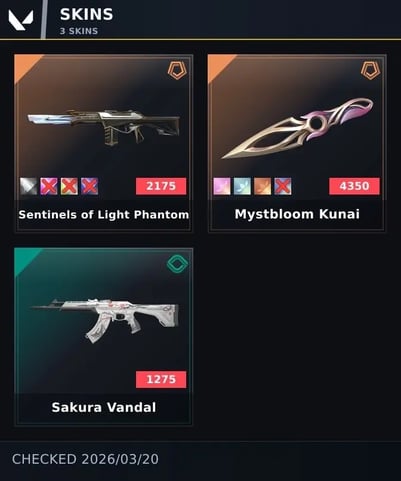 🥎 [Europe/TR] ⸱ 3 Skins | Mystbloom Kunai | Sentinels of Light Phantom | Sakura Vandal