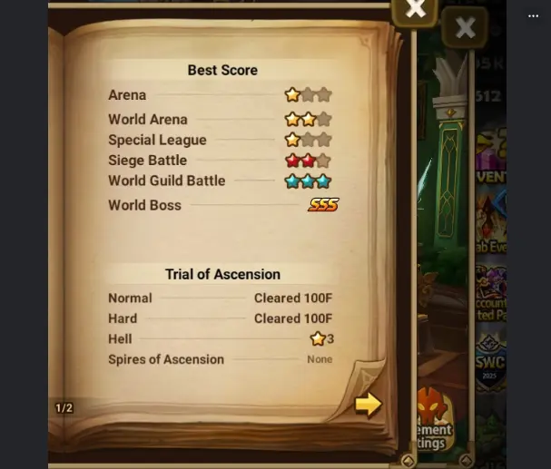 Asia ⸱ 100 LVL+6*-279+2 LD ⸱ Mookwol + Bella + 60 Nat5 + Arena C1 + Tower 200 + 3 Hell + Triple SSS + All Farm ⸱ Abyss H + Chaos 5 lvl