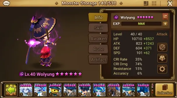 Asia ⸱ 50 LVL+6*-55+2 LD ⸱ Wolyung + Zeratu + 5 Nat5 + Tower 200F + Homuncl + Charlotte + Juno + Raki + Rica