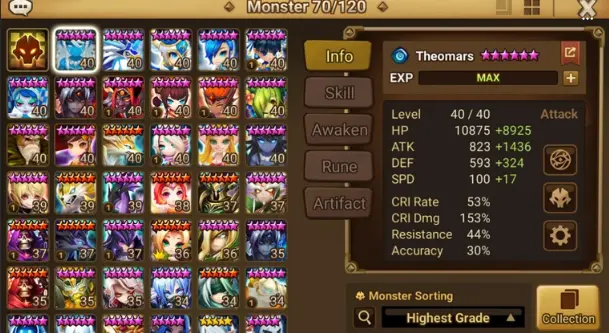 Asia ⸱ 52 LVL+6*-40+1 LD ⸱ Ragdoll + 14 Nat5 + 170F + A+ ⸱ SSS + Chaos 4 lvl + Helena + Dokkaebi Lord + Odin + Taranys
