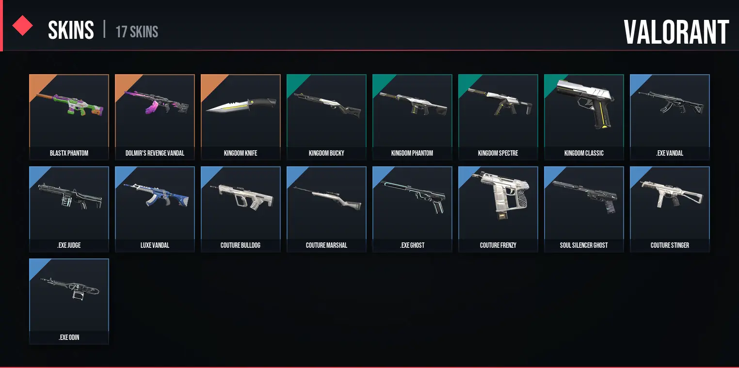 17 Skins / 5225 VP SPENT / Kingdom Knife / BlastX Phantom