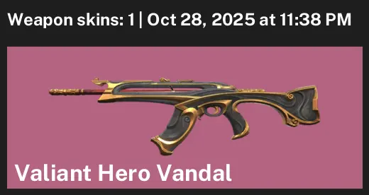 🐁 AP 🧘♀️ Unranked 🏋️♂️ 1 Skins 🎆 665 VP 🎀 3 Agents 🌕 Value: 1775 VP 👜 Valiant Hero Vandal