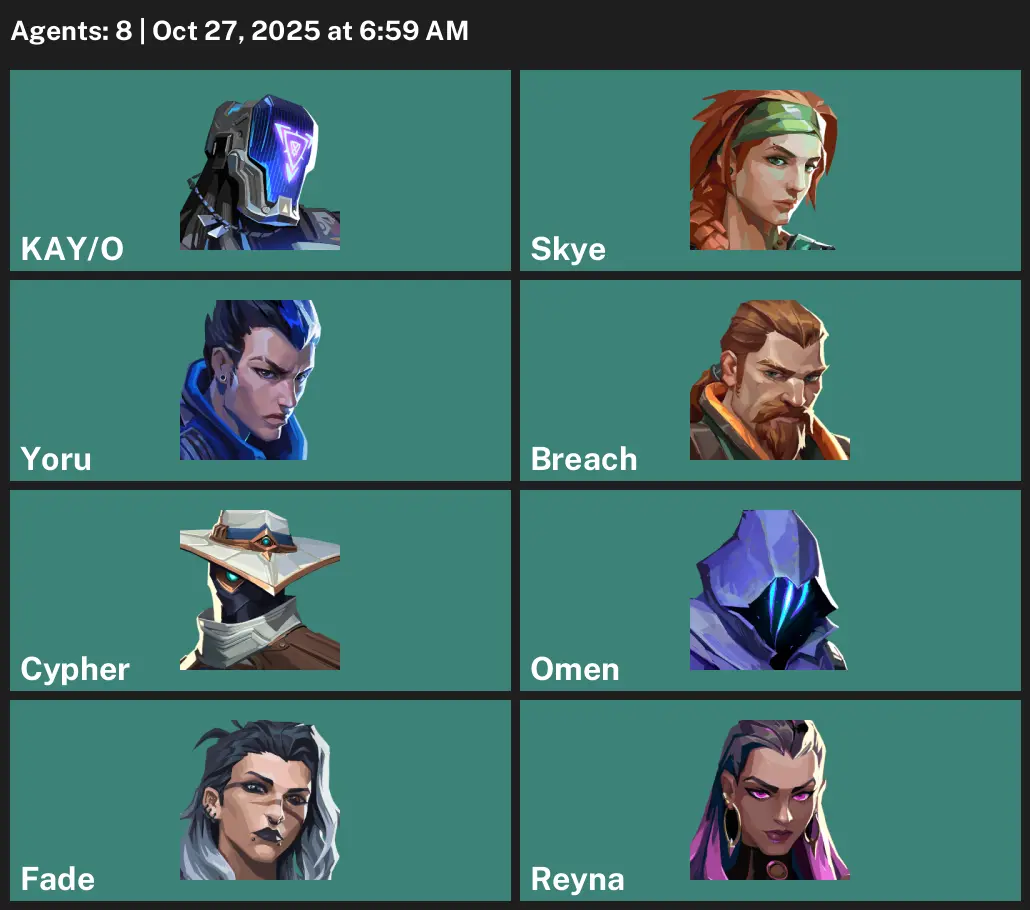 🖊 AP 🎒 Unranked 🤫 13 Skins 🎺 50 VP 🚝 8 Agents 😘 Value: 13275 VP 🔖 Xenohunter Knife 🌒 Luxe Knife 🦙 Gaia's Vengeance Phantom 📊 Cryostasis Bulldog 🏤 Origin Vandal 😷 Tethered Realms Operator