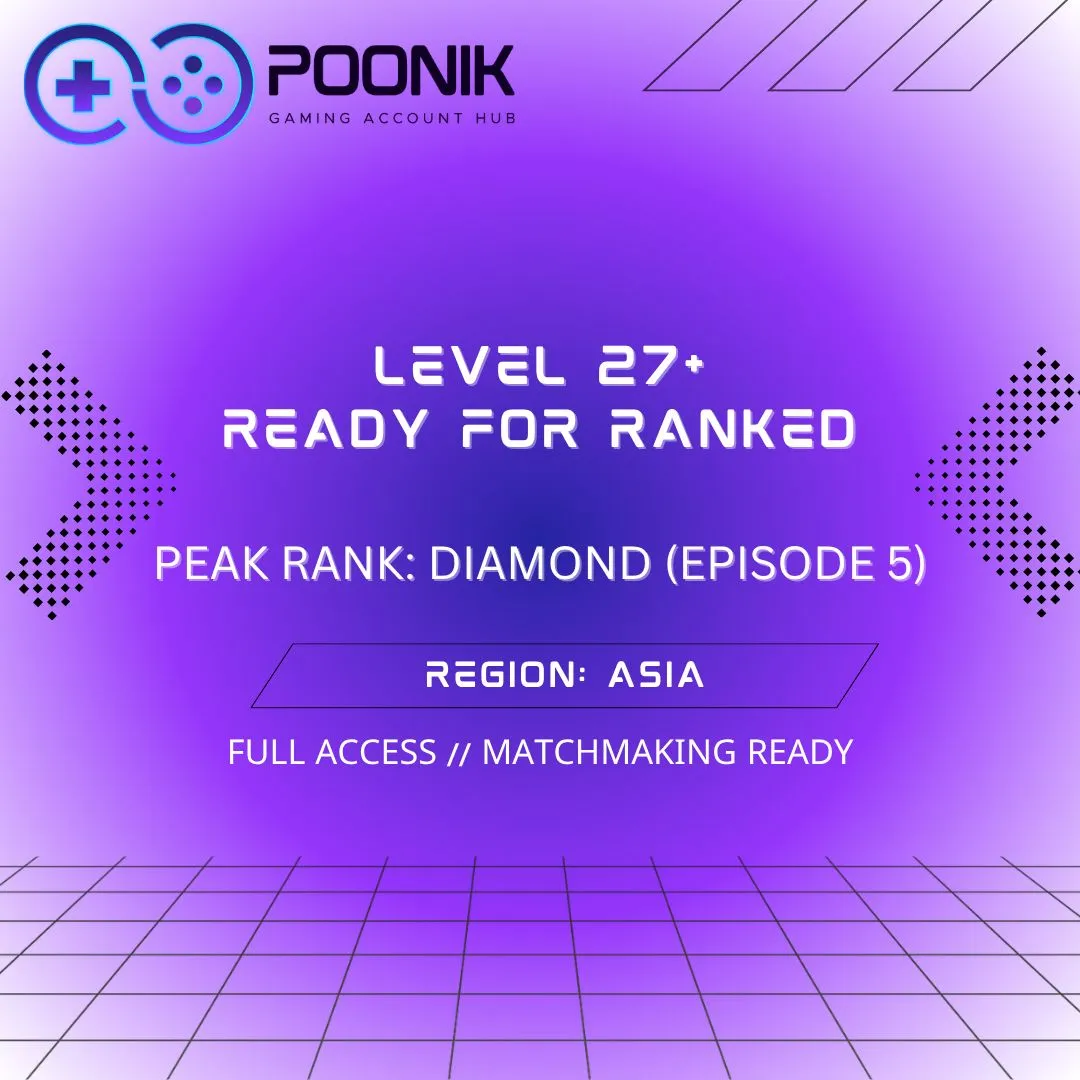 [ASIA/OCE] LEVEL 27+ ⸱ READY FOR RANKED| PEAK RANK ⸱ DIAMOND ⸱ EP 5 | NO BAN ⸱ MANUALLY BOOSTED | ORIGINAL EMAIL FULL ACESS | PC/PSN/XBOX! [RA8]