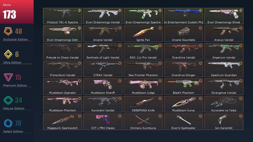 Sada Evori Dreamwings je úchvatná prémiová kosmetická kolekce vydaná ve hře VALORANT, představující okouzlující design inspirovaný fantazií. Balíček se soustředí na jemné, éterické motivy křídel s jemně zářícími barvami, které dávají každé zbrani magický, nadpozemský vzhled. Jedná se o jeden z vizuálně nejvíce výrazných balíčků ve hře, oslovující hráče, kteří dávají přednost něčemu elegantnímu a jedinečnému místo agresivního nebo takticky vyhlížejícího vzhledu.