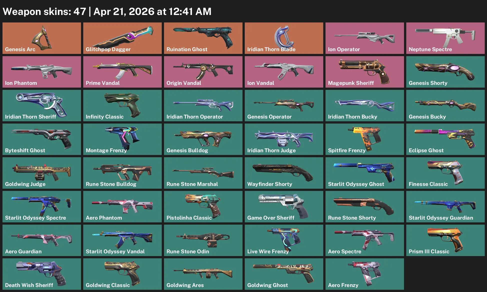 EU / 47 Skins / 18950 VP SPENT / Glitchpop Dagger / Ruination Ghost / Ion Vandal / Ion Operator / Magepunk Sheriff #VA0836