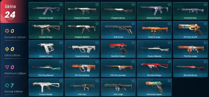 EU / VALORANT 24 skins / +lol 92 skins Europe West / 249 LVL mssh1143