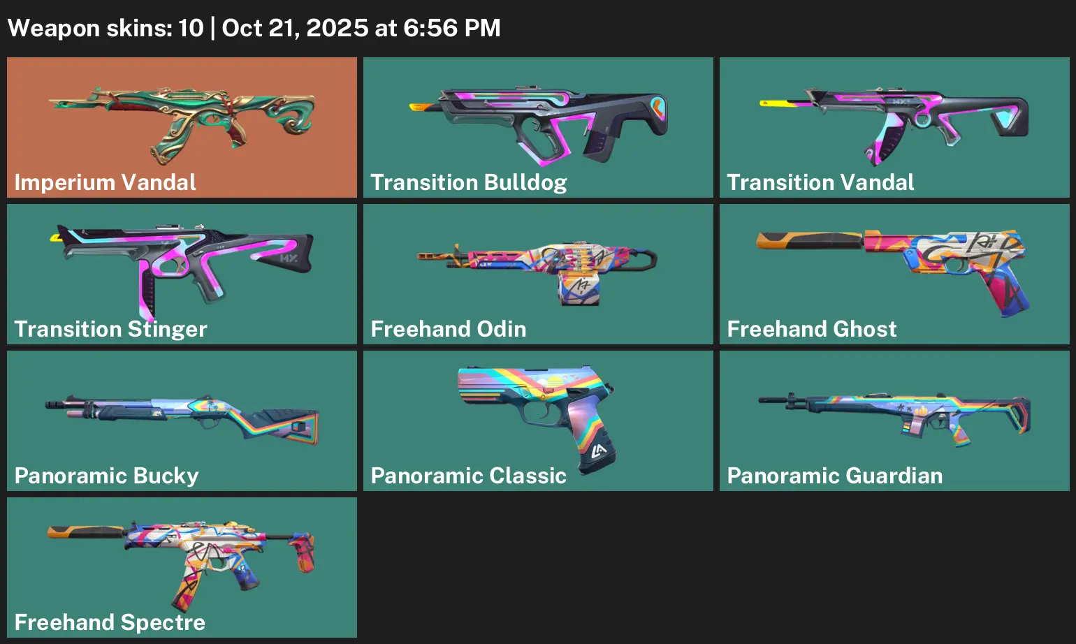 LA | 10 Skins | exp BRONZE 2 | Imperium Vandal | Transition Vandal | Freehand Ghost | Panoramic Classic | Transition Bulldog | S4G