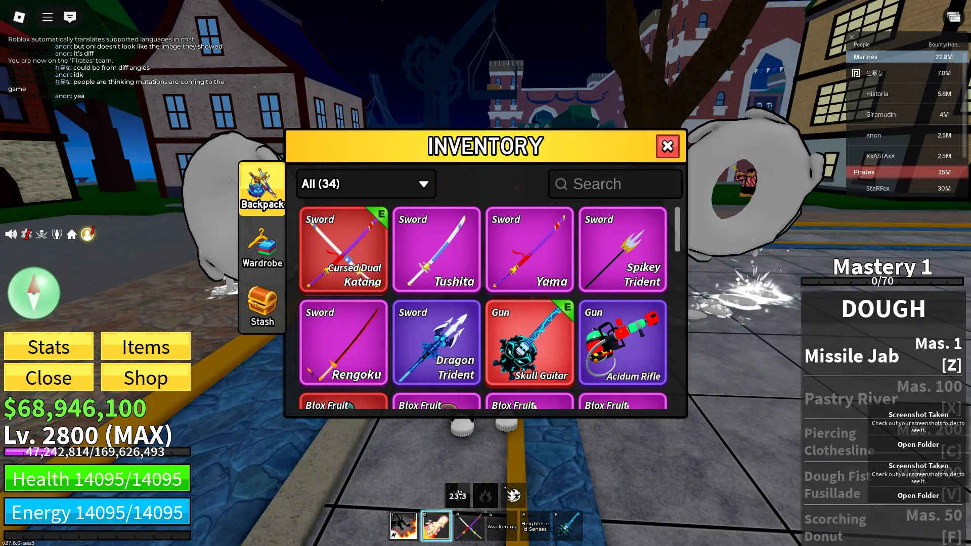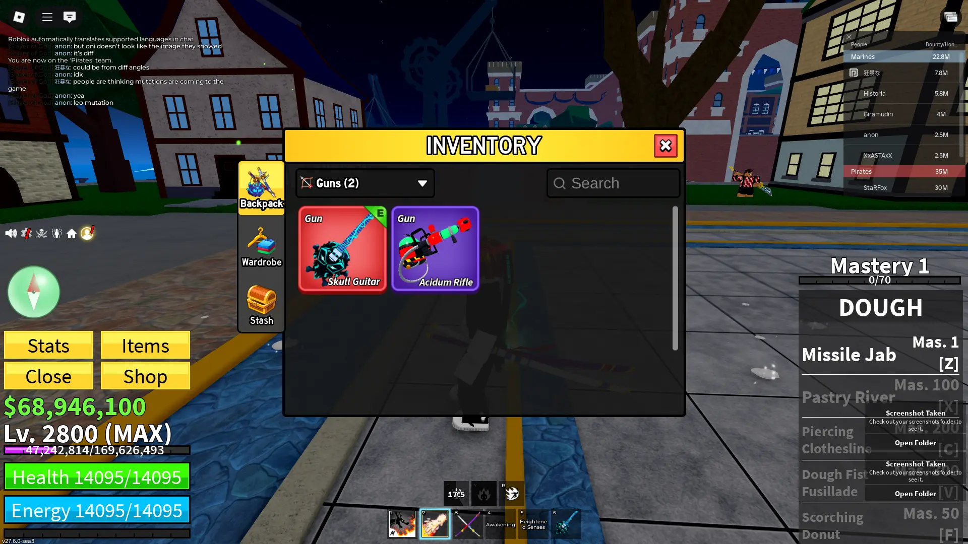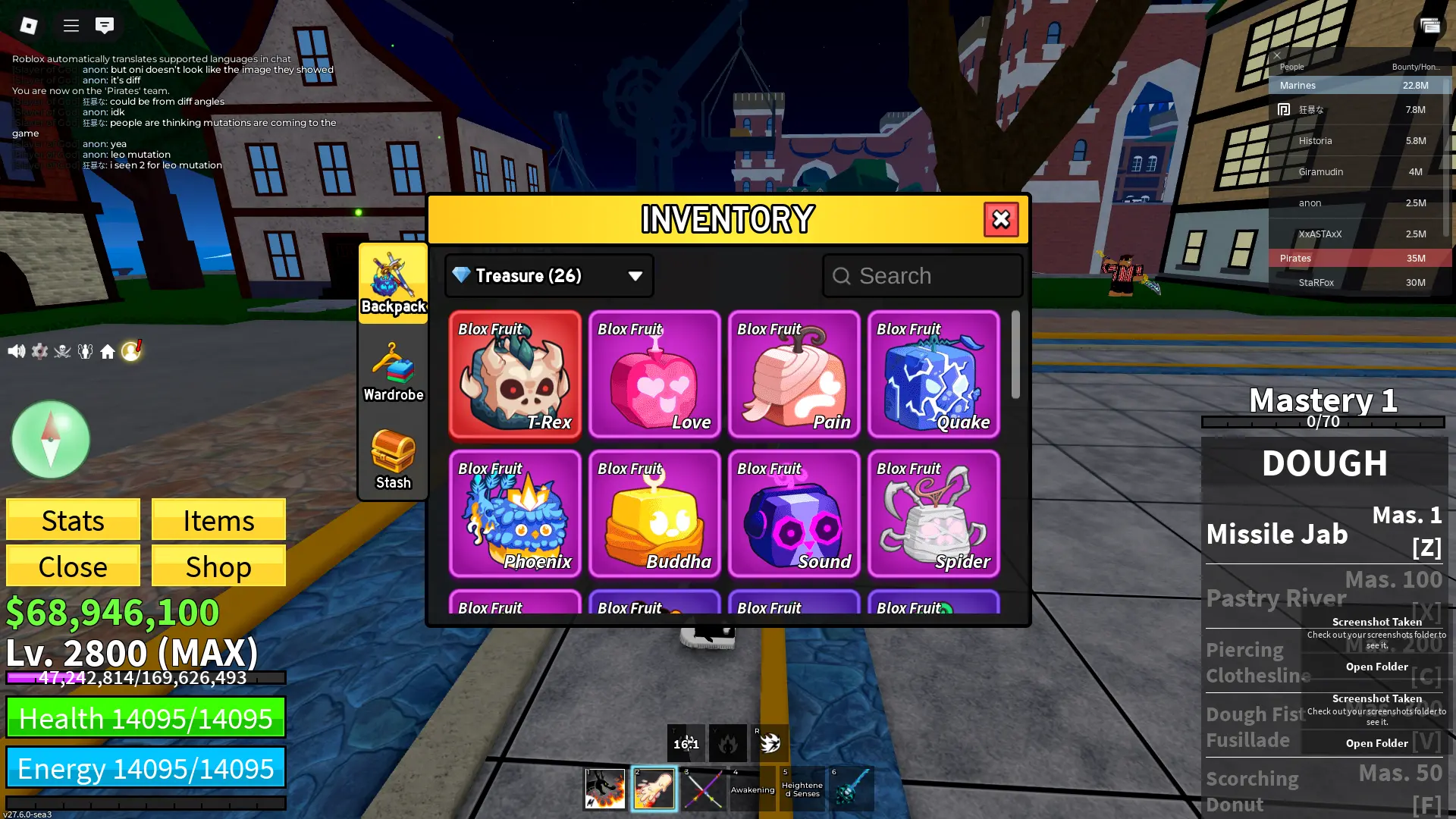 🌀 BLOX FRUITS 2800 Max Level ✅ Ghoul full gear + Dough V2 | 2.6M Bounty | GHM | CDK | Skull Guitar | fragment 140k | Friut Inventory | Unlinked✅ INSTANT DELIVERY ✅