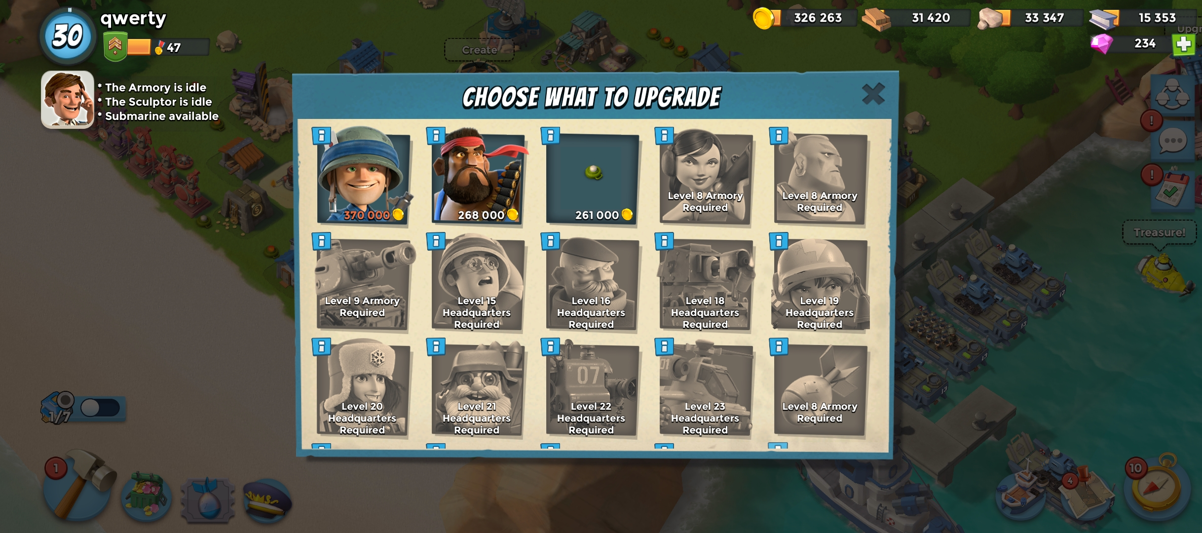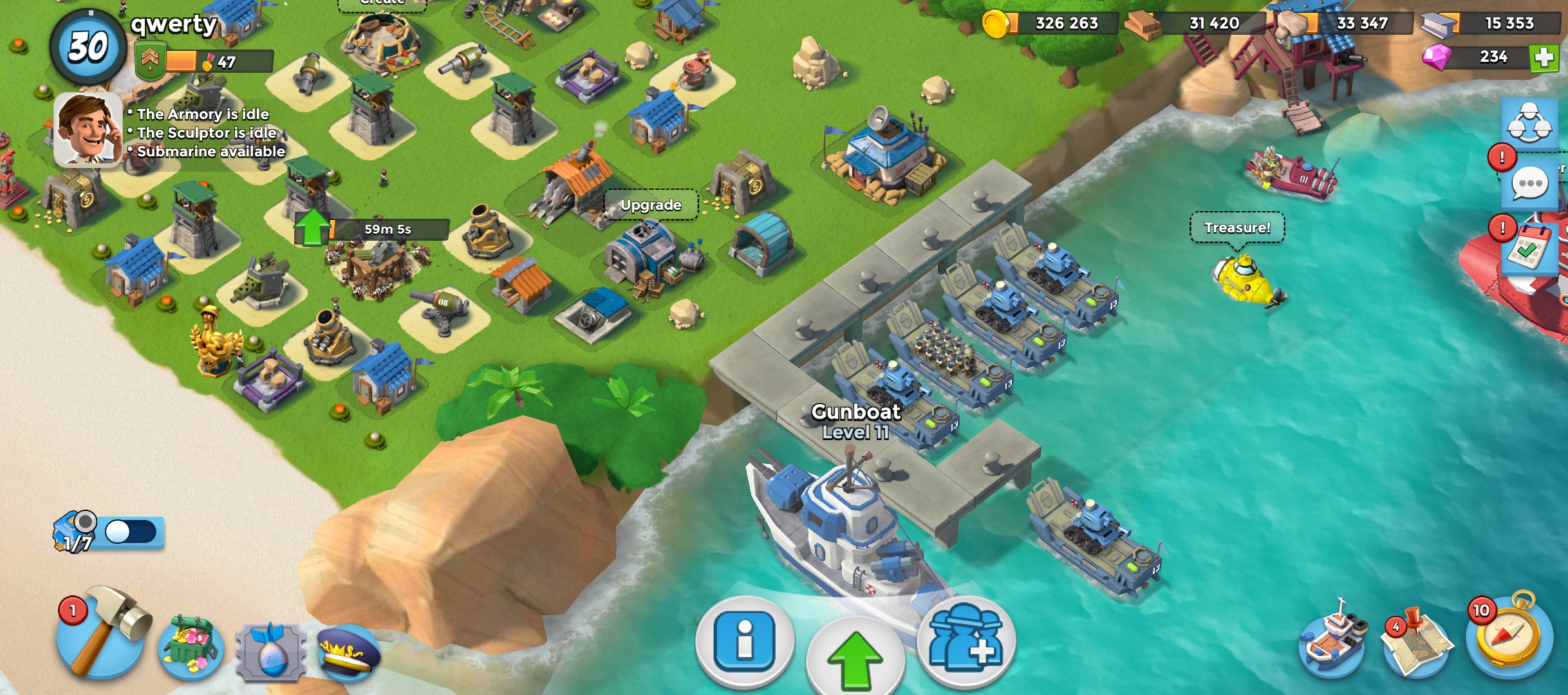 30 level | 🏯Headquarters level 11 |🥇VP 45 | ⛴️ Gunboat 11 | 📡 Radar level 10 | 💎Diamond 200 | Landing Craft 9