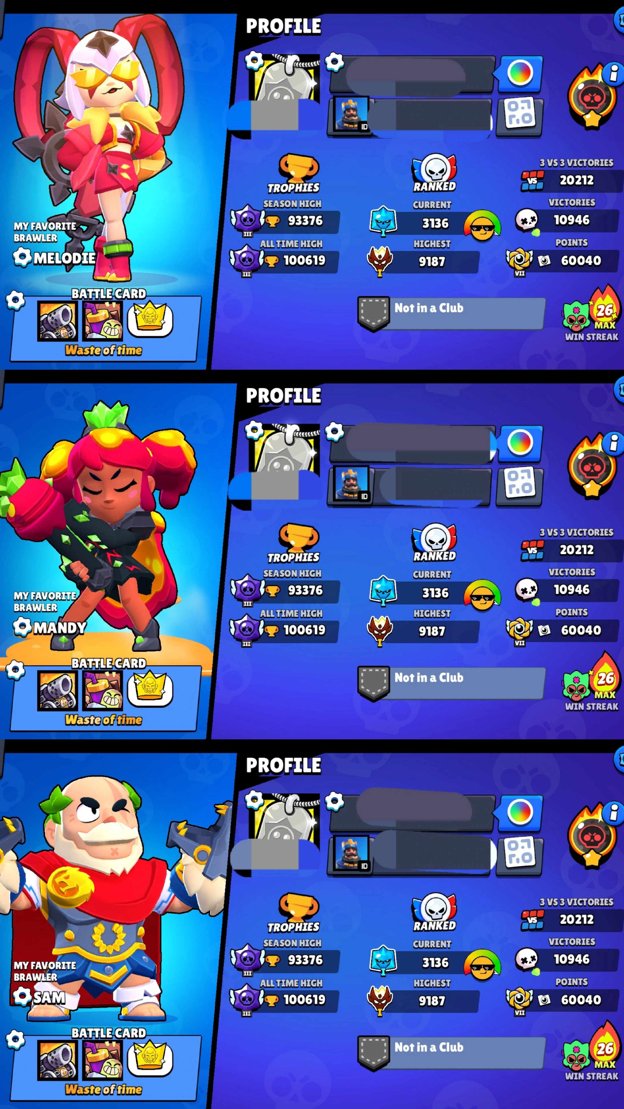 ๐ [ 1,00,000 TROPHIES ๐ฅ ] METEROIC FAME 1 ๐ฅ INSANE PL MASTERS STATS ๐ฅ 55 TITLES ๐ 360 SKINS+ ๐ฏ 17,000 GOLD ๐ช 20,000 3V3 VICTORIES ๐ฅ RARE EXCLUSIVE SKINS GAMER BIBI ๐ PIRATE COLT ๐ PIRATE POCO ๐ฅ ONI KENJI ๐ PHEONIX CROW ๐ INSTANT DELIVER