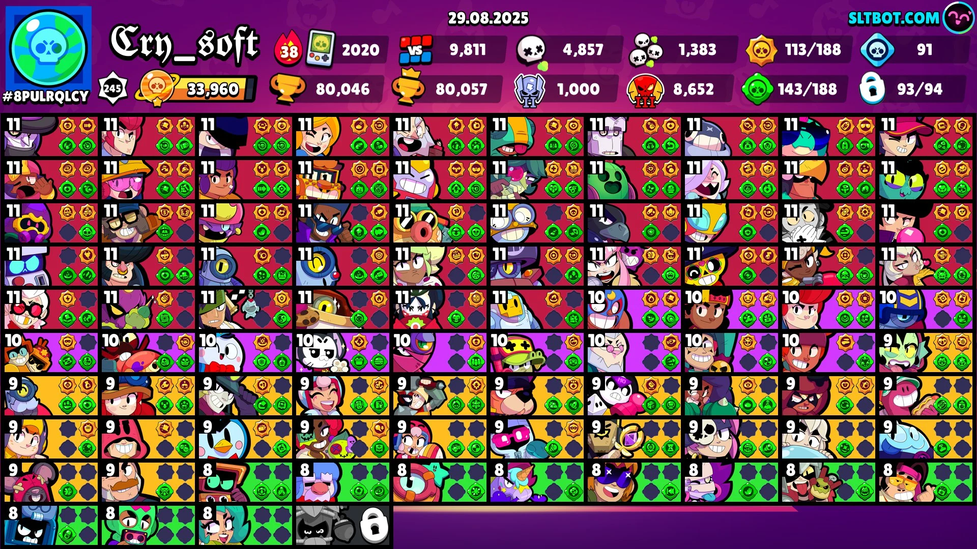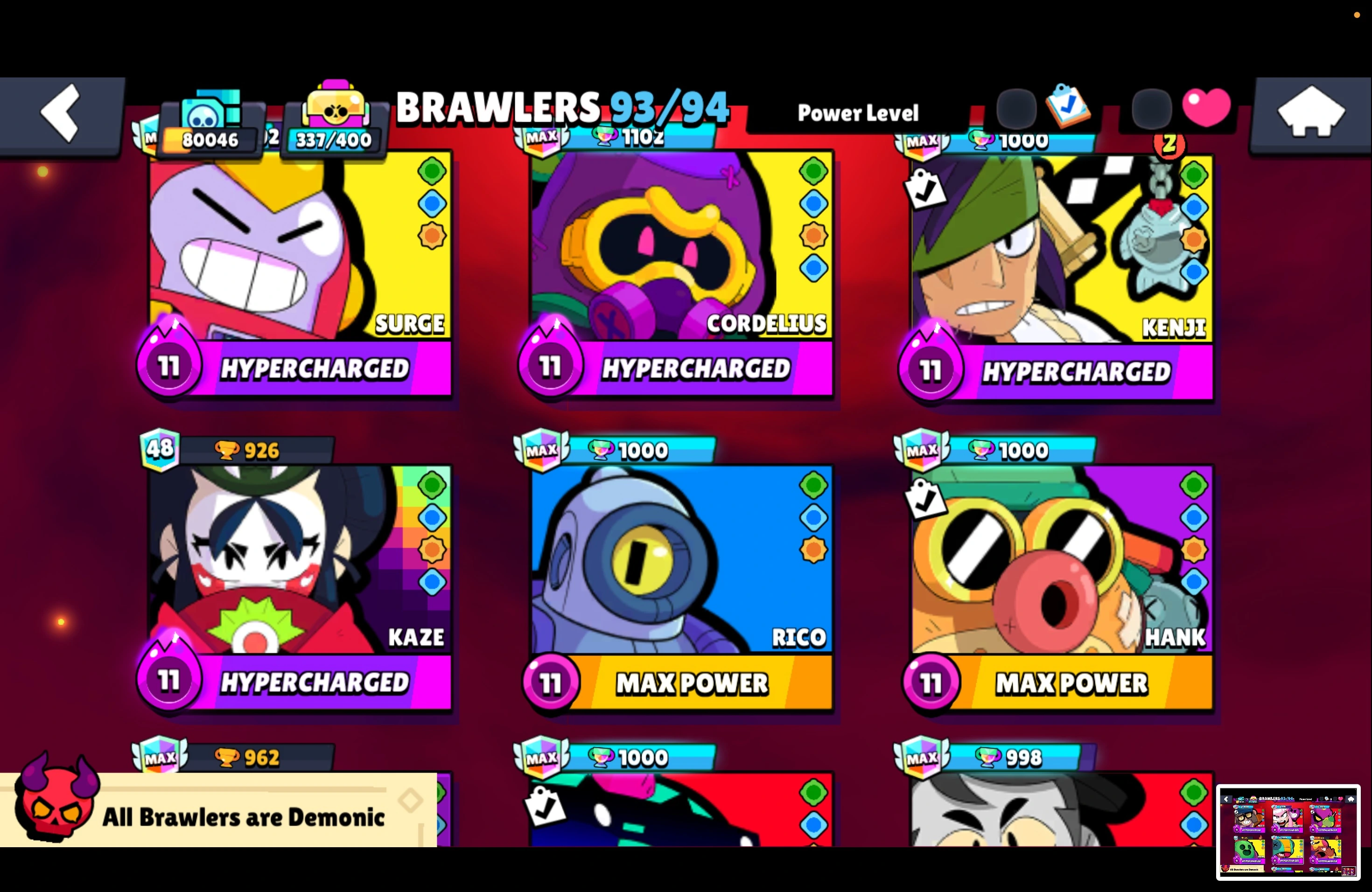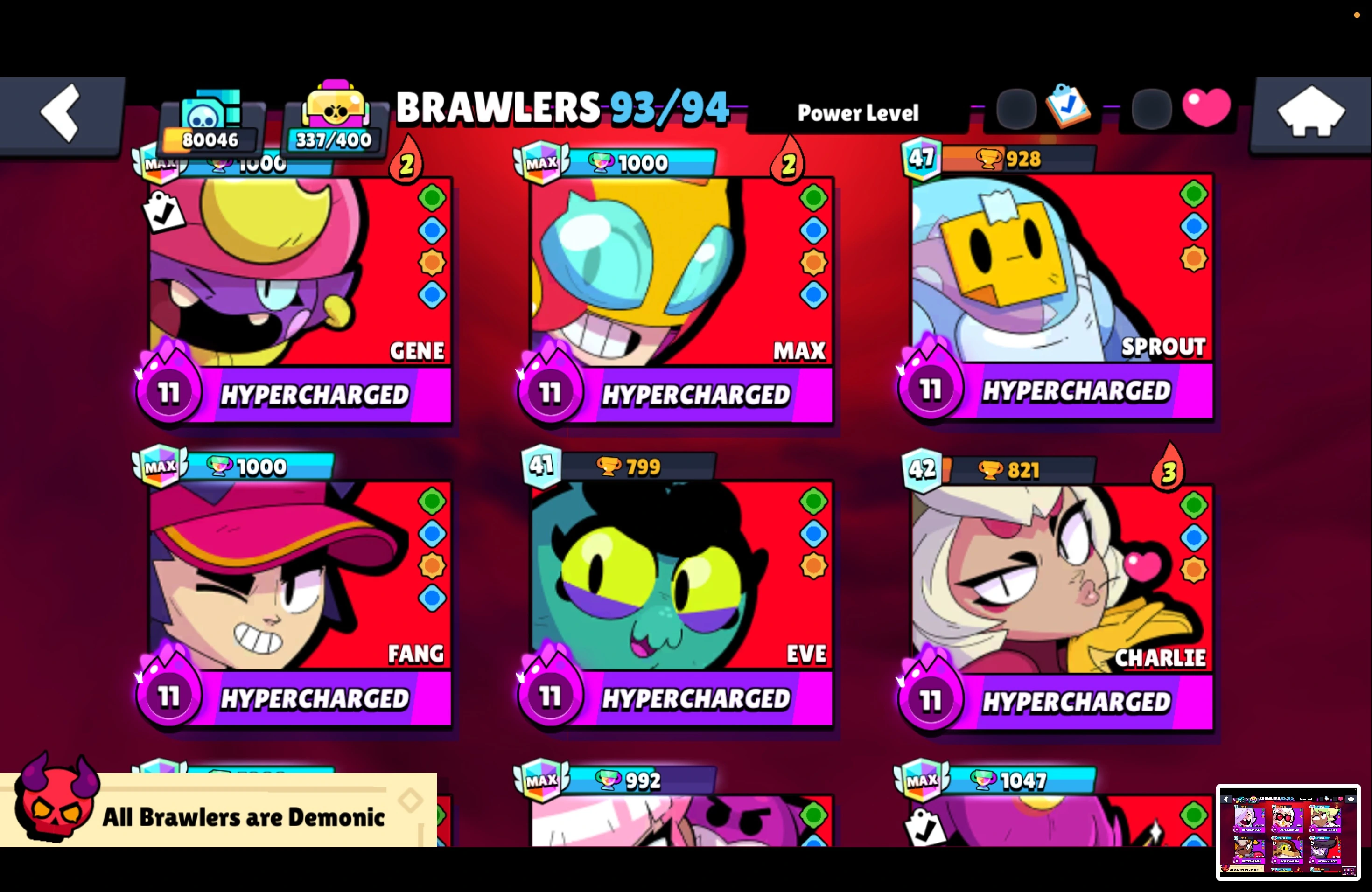 11.11 PIN ⭐ 16 TITLES ⭐ WEREWOLF LEON ⭐ 231 SKINS ⭐ 80.000 TROPHY ⭐ 93 BRAWLERS ⭐ 46 MAX ⭐ 40 HYPERCHARGED ⭐ LOADED RICO ⭐ MARIPOSA PIPER ⭐ ZEUS BROCK ⭐ KONG SURGE ⭐ KABOCHA FANG ⭐ SPIKE ⭐ LEGENDARY ⭐ MECHA LEON