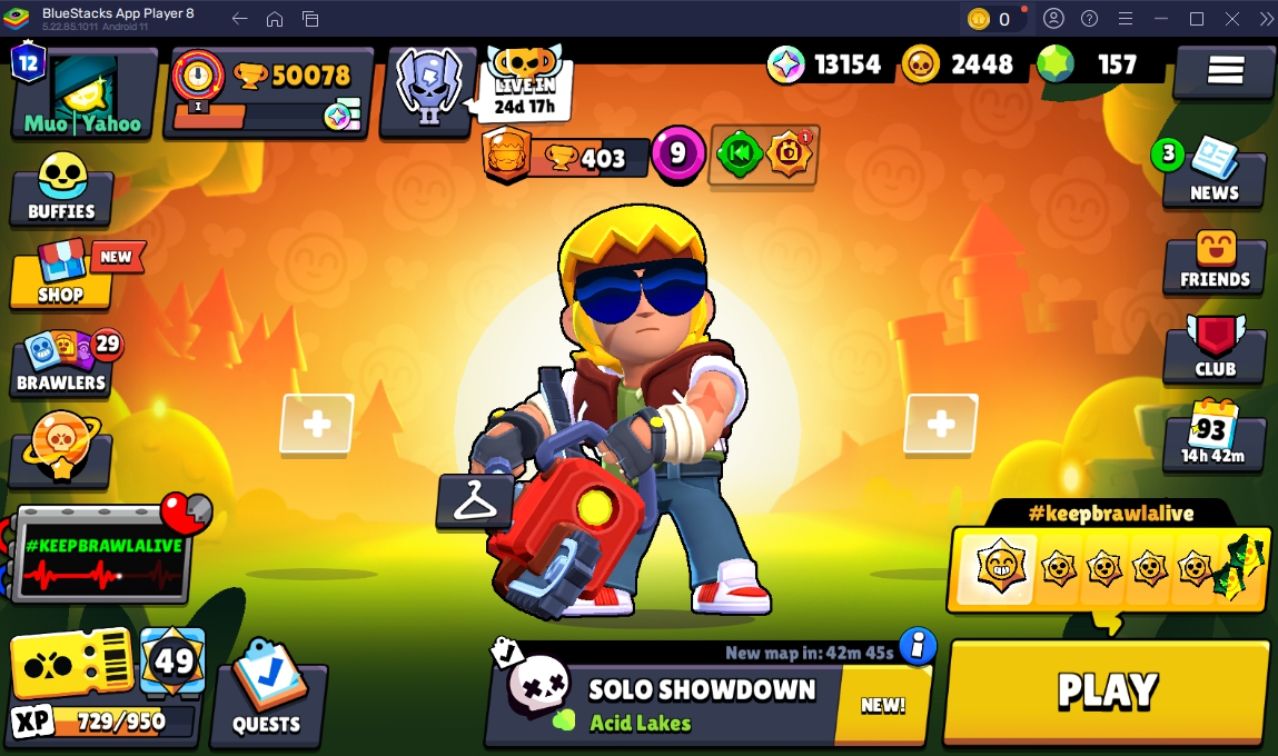 155 GEMS ⭐ 266 SKINS ⭐ 50.100 TROPHY ⭐ 101 BRAWLERS ⭐ 24 HYPERCHARGED ⭐ 31 MAXED BRAWLERS ⭐ 12 PRESTIGE ⭐ 14 BUFFIES ⭐ CHAINSAW BUSTER ⭐ CUPID PIPER ⭐ GUARD RICO ⭐ TRASH POCO ⭐ SHINOBI ASH ⭐ LEGENDARY ⭐ 50K