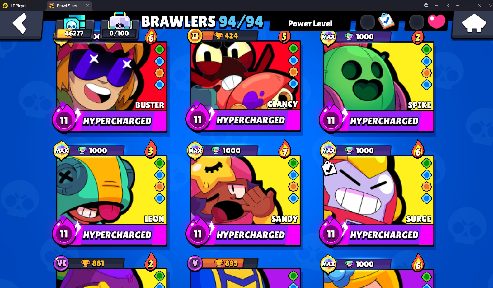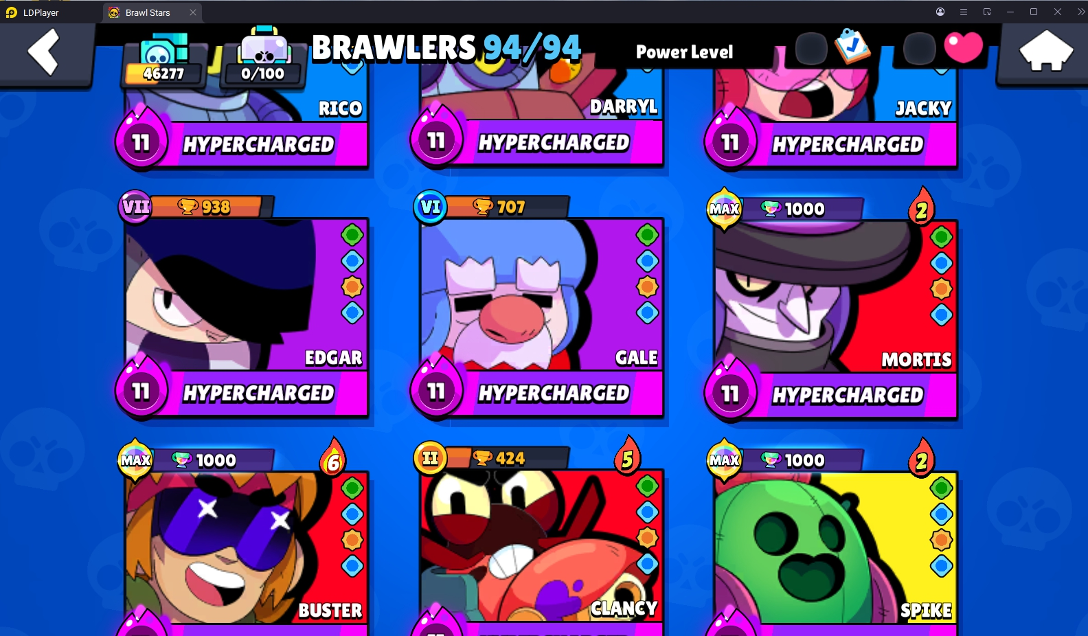 187 SKINS 💯 46.277 TROPHIES 🏆 94 BRAWLERS 🐼 19 HYPERCHARGED 🩸 19 MAX BRAWLERS 💛 CURSED KENJI 🧡 CAPTAIN CARL 🧡 DARK LORD SPIKE 🧡 FINAL BOSS RICO 🧡 GROUCH MIKO 💯