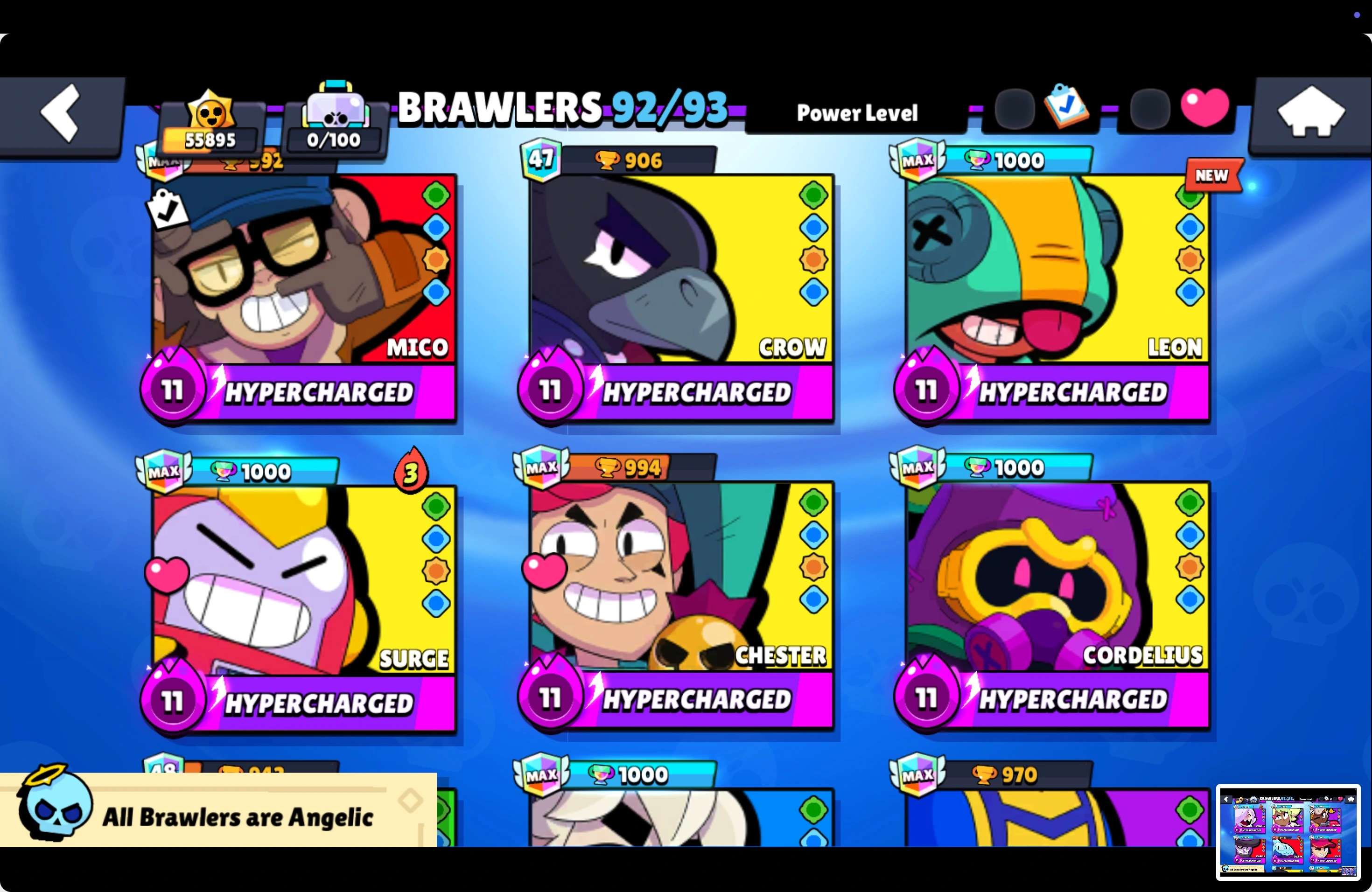 219 SKINS ⭐ 55.900 TROPHY ⭐ 92 BRAWLERS ⭐ 40 MAX ⭐ 24 HYPERCHARGED ⭐ KITBOXER ⭐ CURSED KENJI ⭐ CORSAIR COLT ⭐ KRAKEN SURGE ⭐ KABOCHA FANG ⭐ SPIKE ⭐ LEGENDARY ⭐ LEON