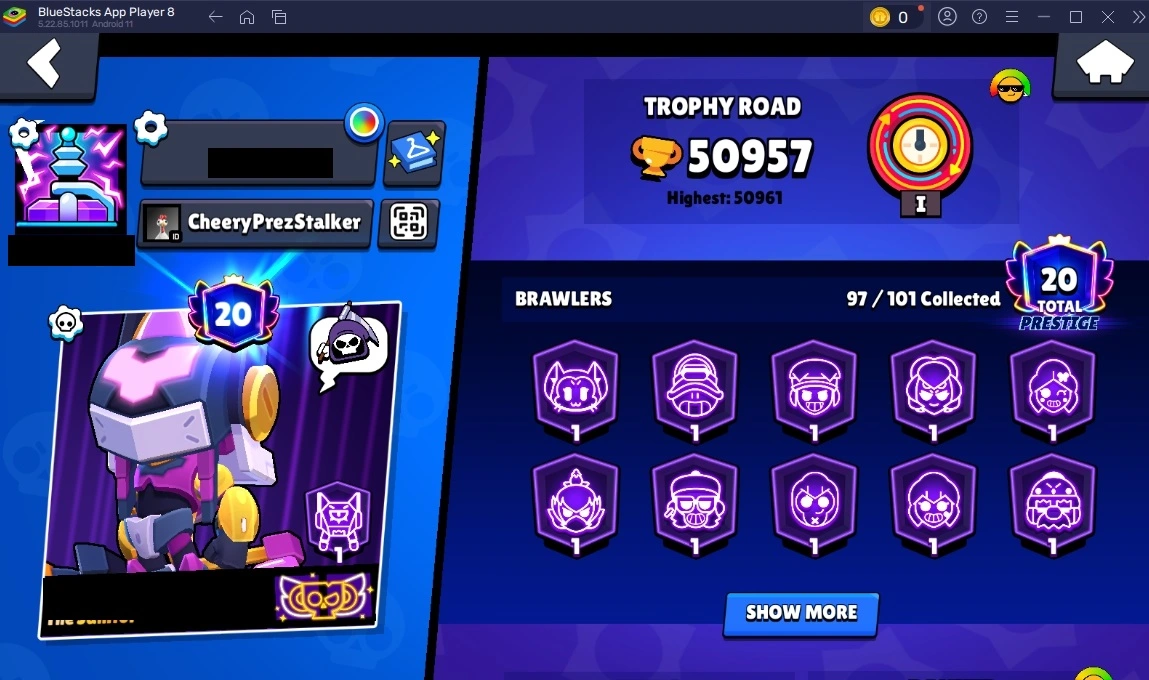 244 SKINS ⭐ 51.000 TROPHY ⭐ 97 BRAWLERS ⭐ 10 HYPERCHARGED ⭐ 13 MAXED BRAWLERS ⭐ 20 PRESTIGE ⭐ 18 BUFFIES ⭐ IMPIE COLETTE ⭐ POOP SPIKE ⭐ KRAKEN SURGE ⭐ CCTV POCO ⭐ SCRATHER POCO ⭐ LEGENDARY ⭐ 50K