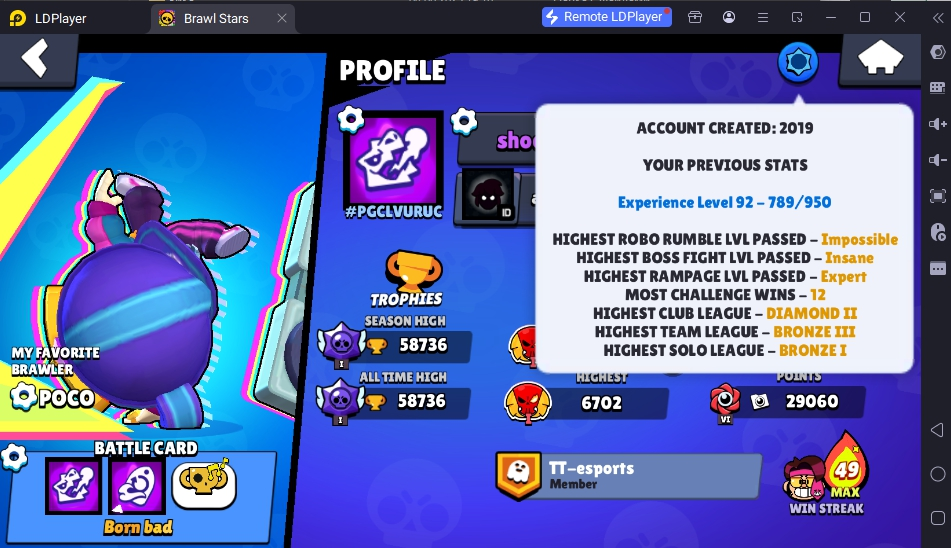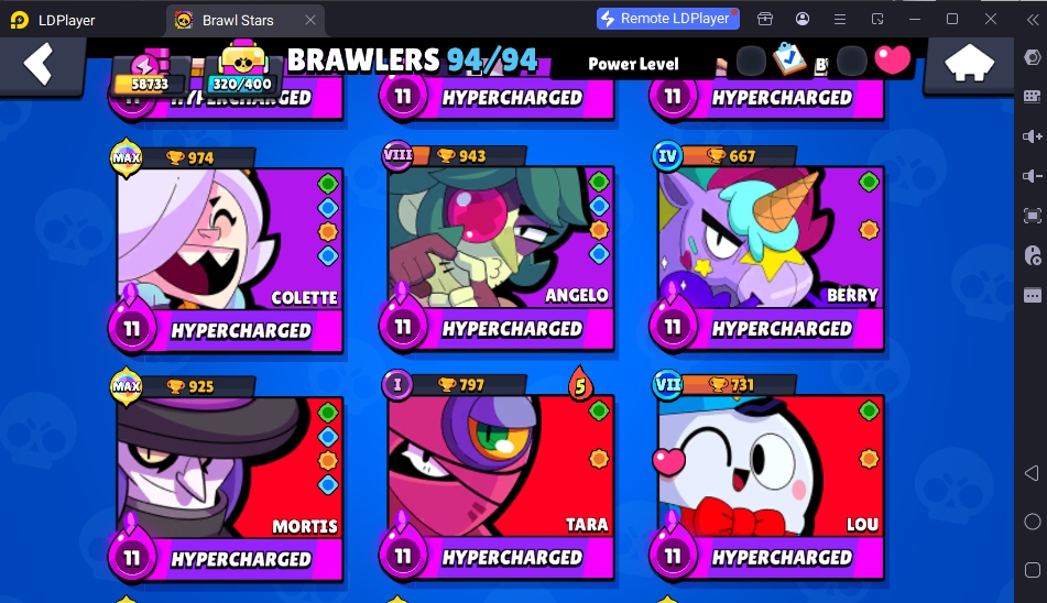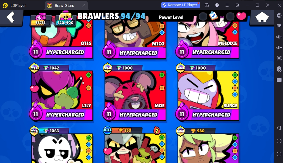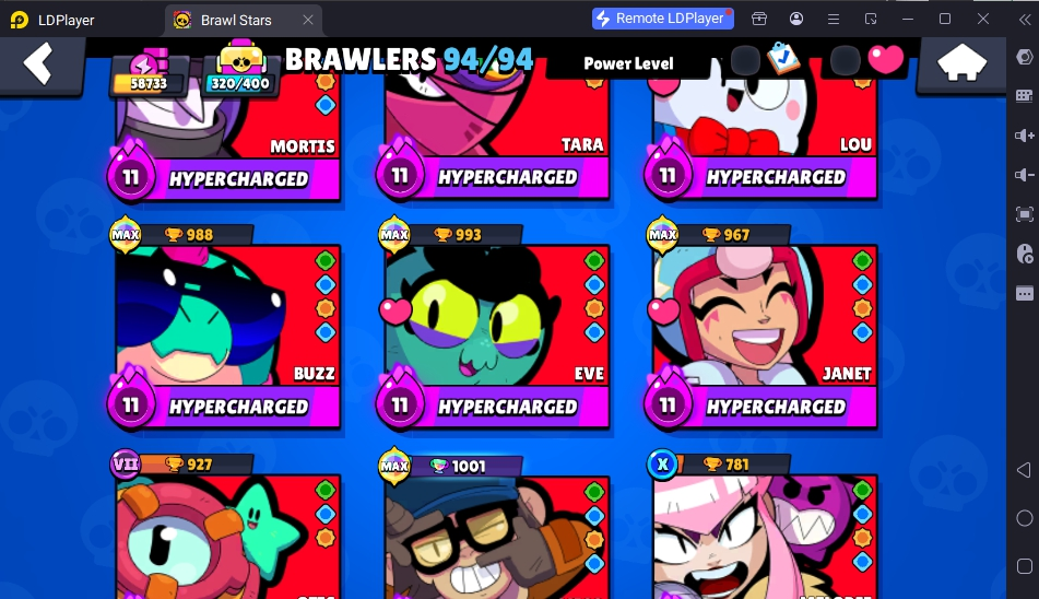 266 SKINS 💯 24 TITLES 🧡 58.733 TROPHIES 🏆 94 BRAWLERS 🐼 26 HYPERCHARGED 🩸 31 MAX BRAWLERS 💛 BEATMATCHER POCO 🧡 DJ POCO 🧡 HOCKEY MORTIS 🧡 WHITE WOLF LEON 🧡 RUDE LOU 💯