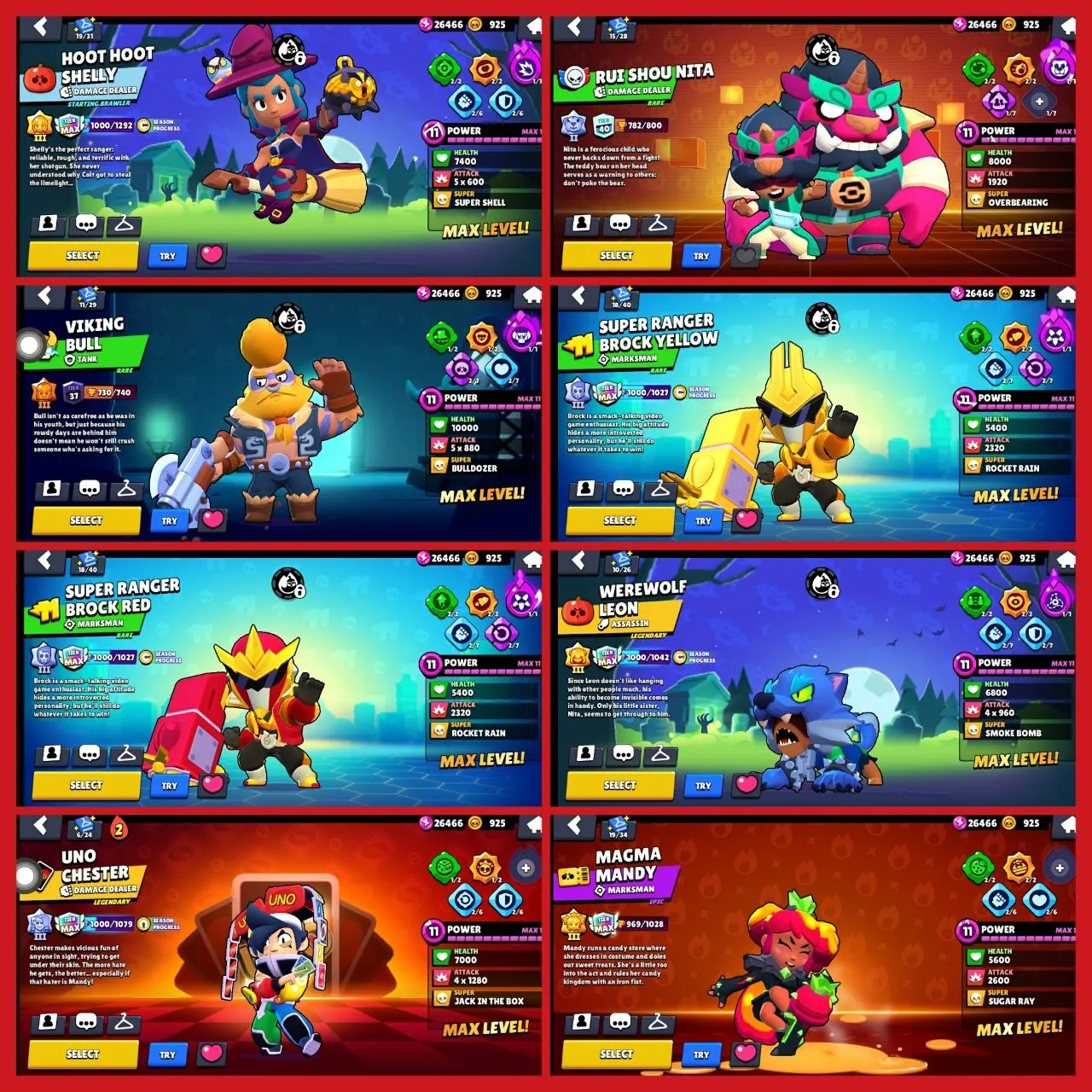 🥰[49000+ TROPHY] 😈| [RARE HOOTHOOT SHELLY &❤️ WEREWOLF LEON] 💞| 13 HYPERCHARGED |❤️🔥 15 MAXED BRAWLER 💝| 191 SKINS |😂 9 MASTERYTITLES 🙂| MAGMA MANDY |