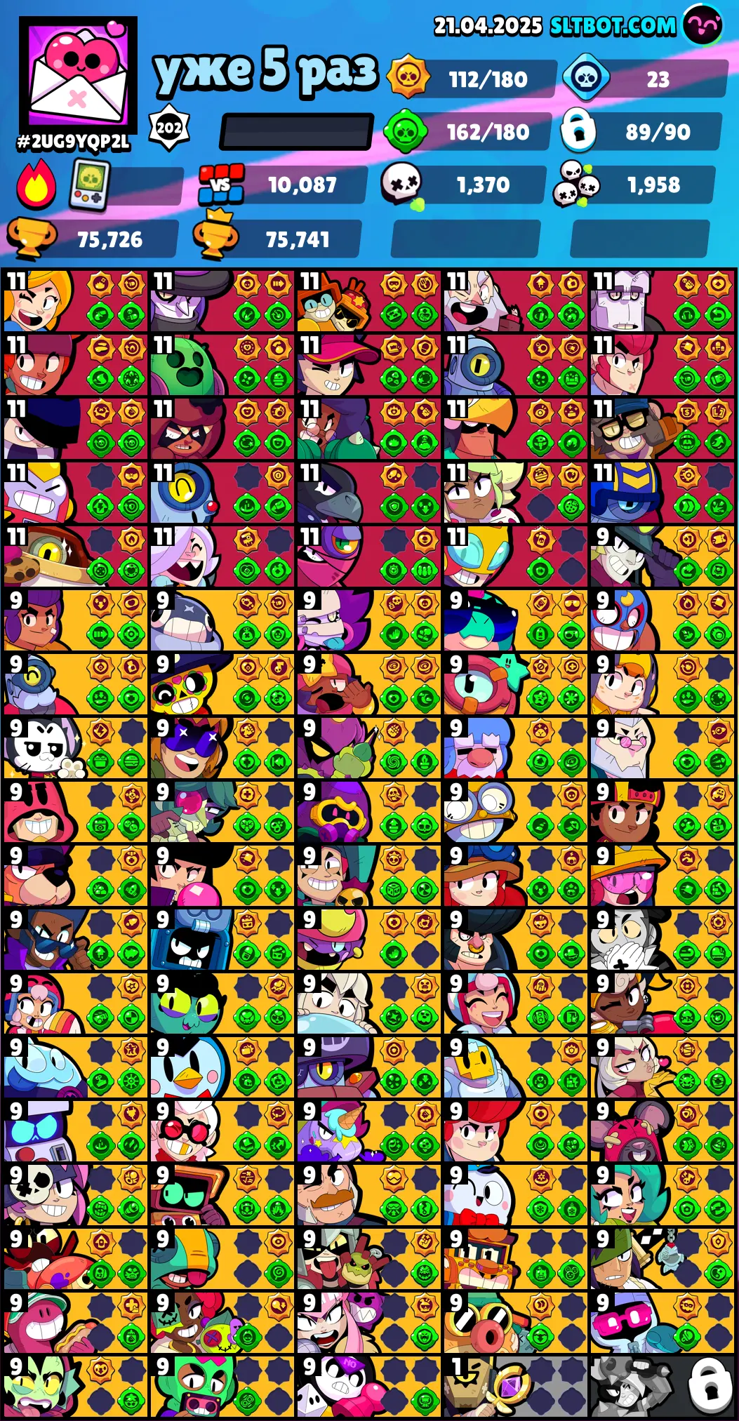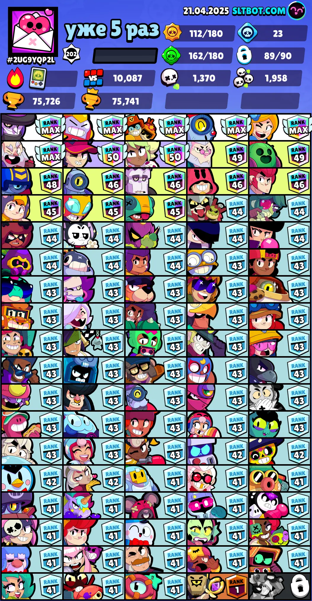 90 Brawler | 75k Trophy🏆 | Max Brawler 24 | Haypercharged 17 | Skin 180 | 1000+ Trophy Brawler 6 | 75000 | instant Delivery | Android & IOS