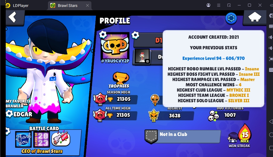97 SKINS 🩵 21.305 TROPHIES 🏆 73 BRAWLERS 🧸 3 HYPERCHARGED 🍒 9 MAX BRAWLERS ⭐ BIBBLE TROUBLE AMBER 🩵 CUPID PIPER 🩵 DEMON OTIS 🩵 DOCTOR EDGAR 🩵 DYNASTY MIKE