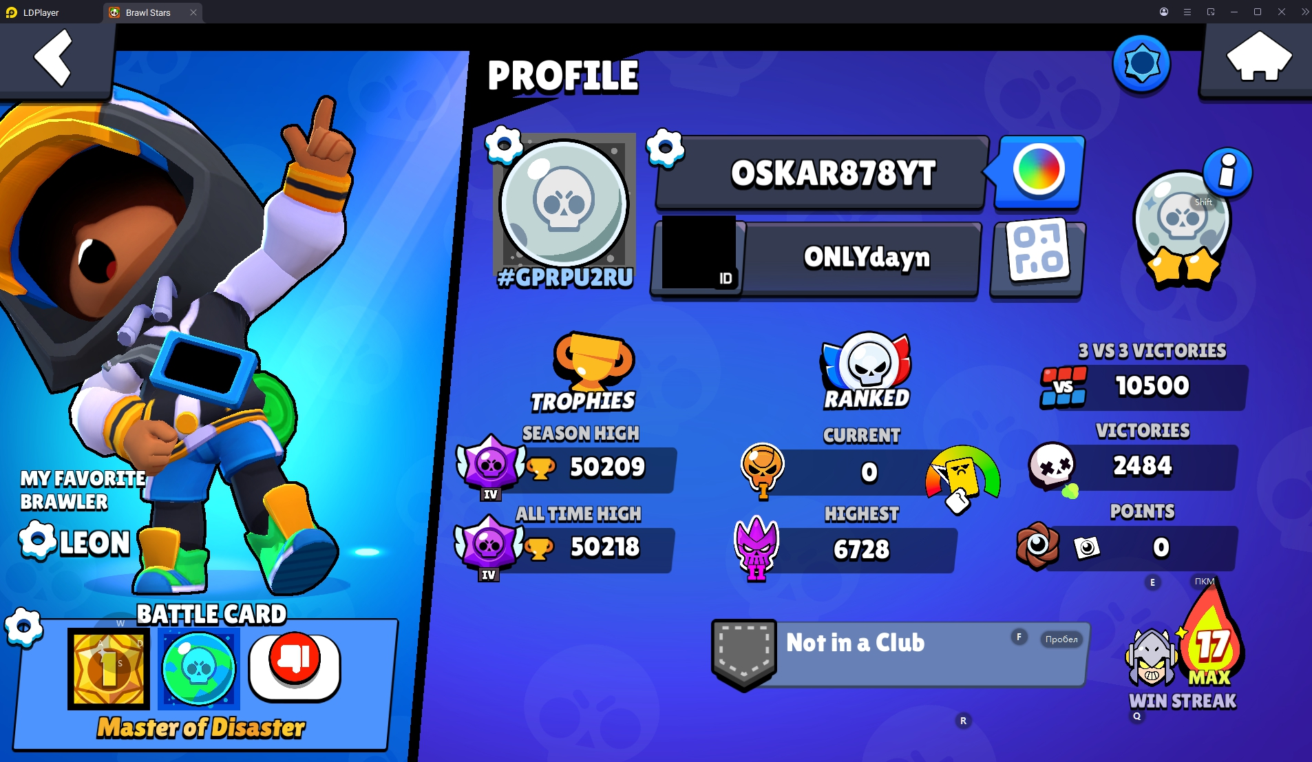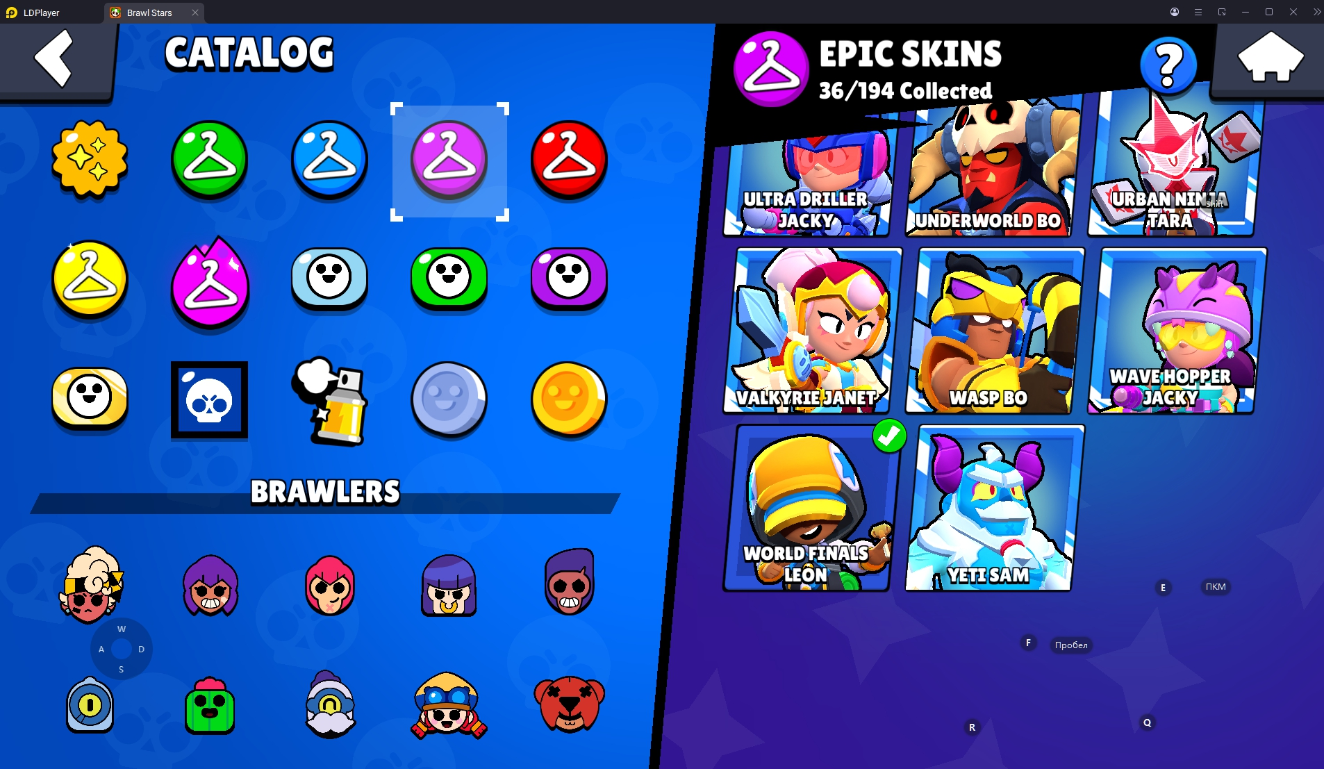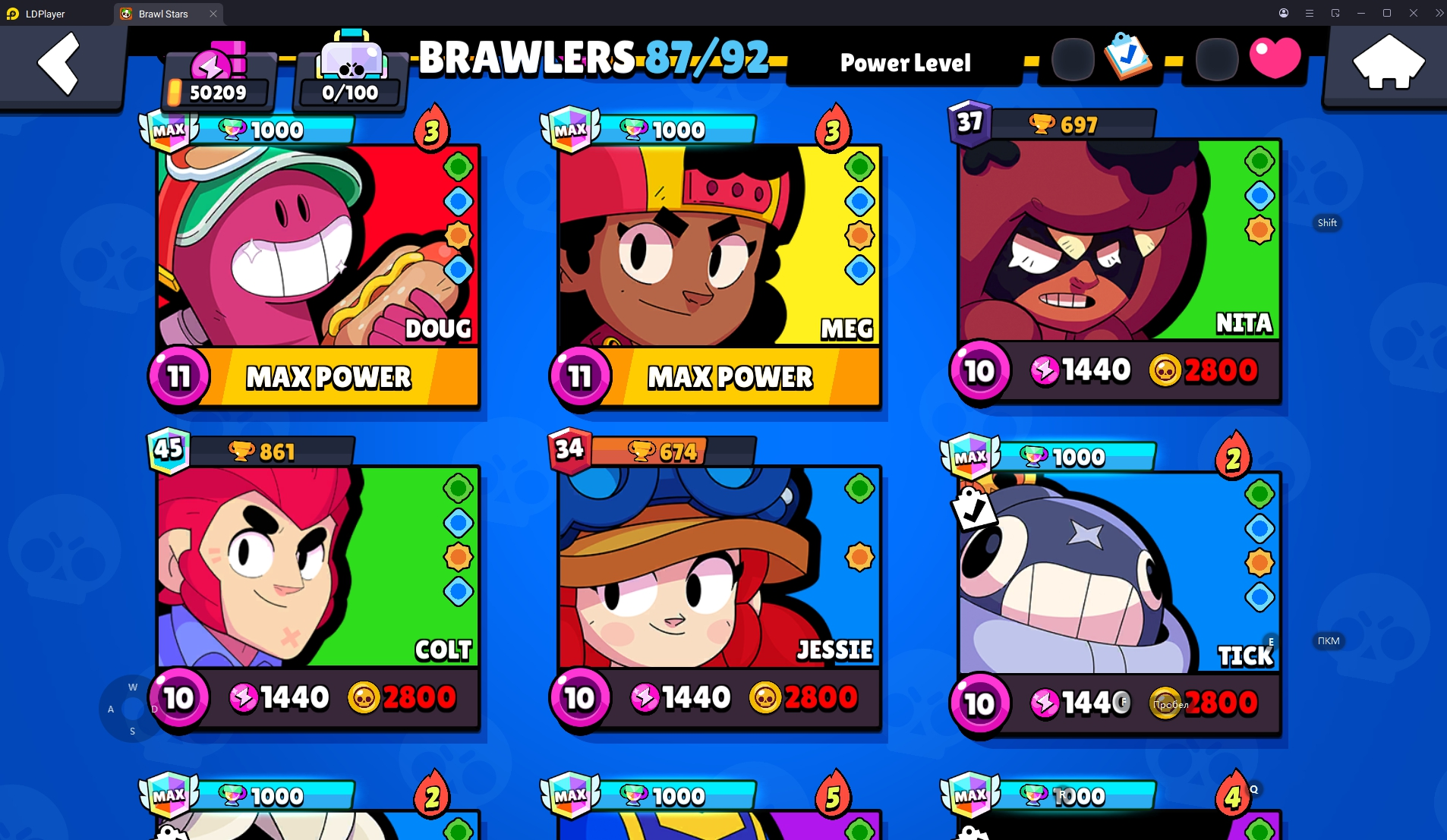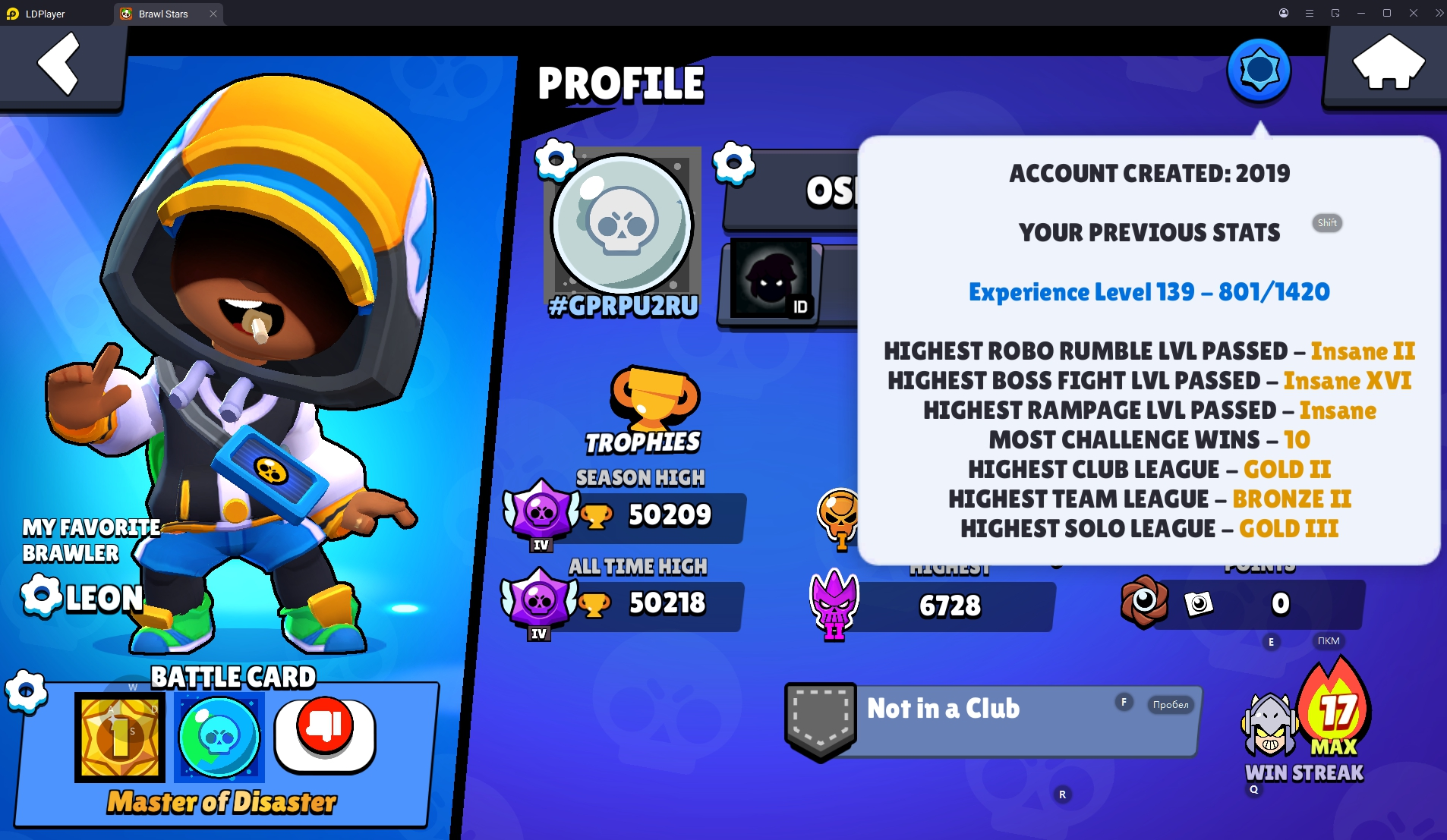 154 SKINS 💯 WORLD FINALS LEON 🧡 50.209 TROPHIES 🏆 87 BRAWLERS 🐼 9 HYPERCHARGED 🩸 14 MAX BRAWLERS !MKG0669