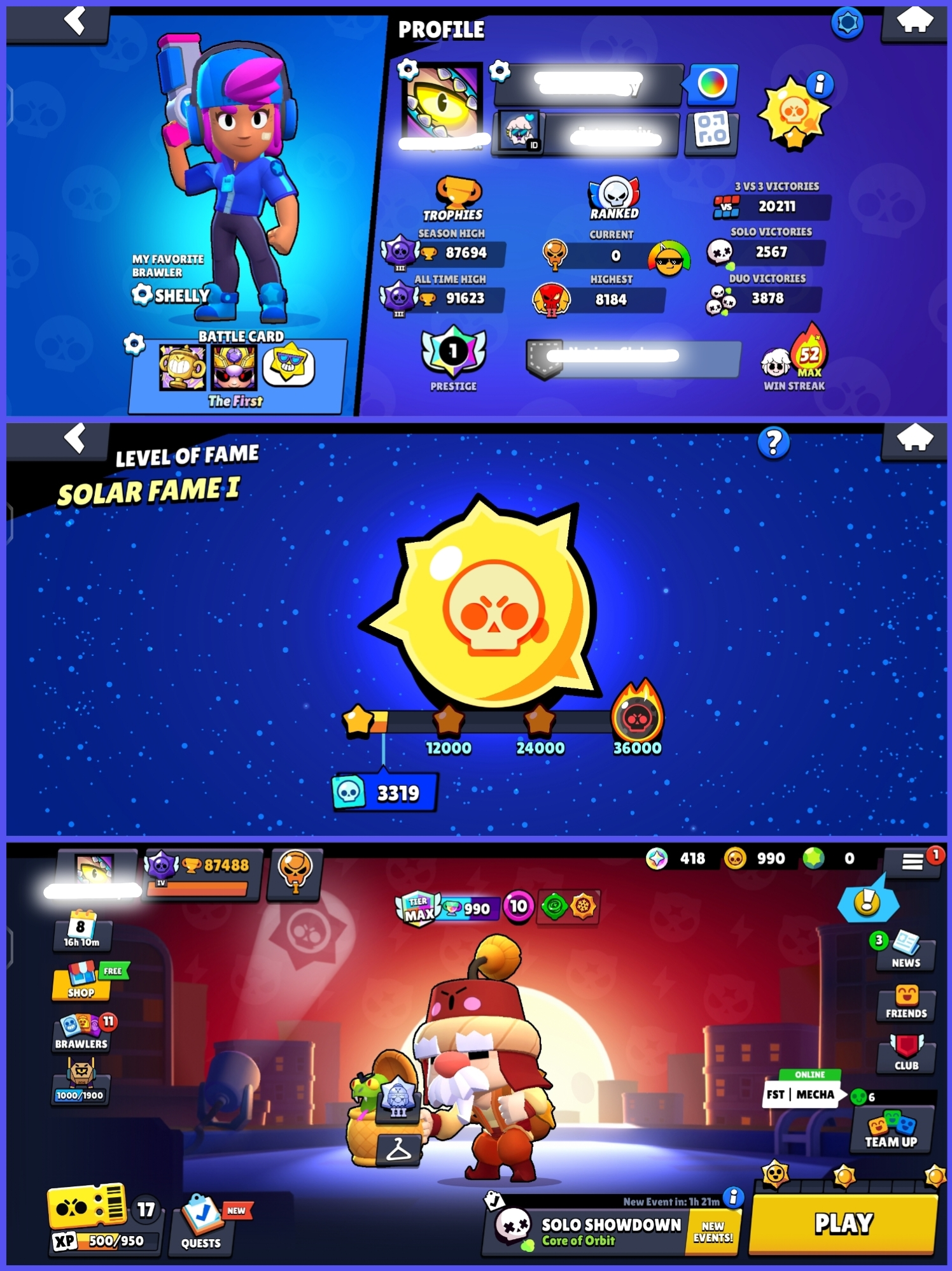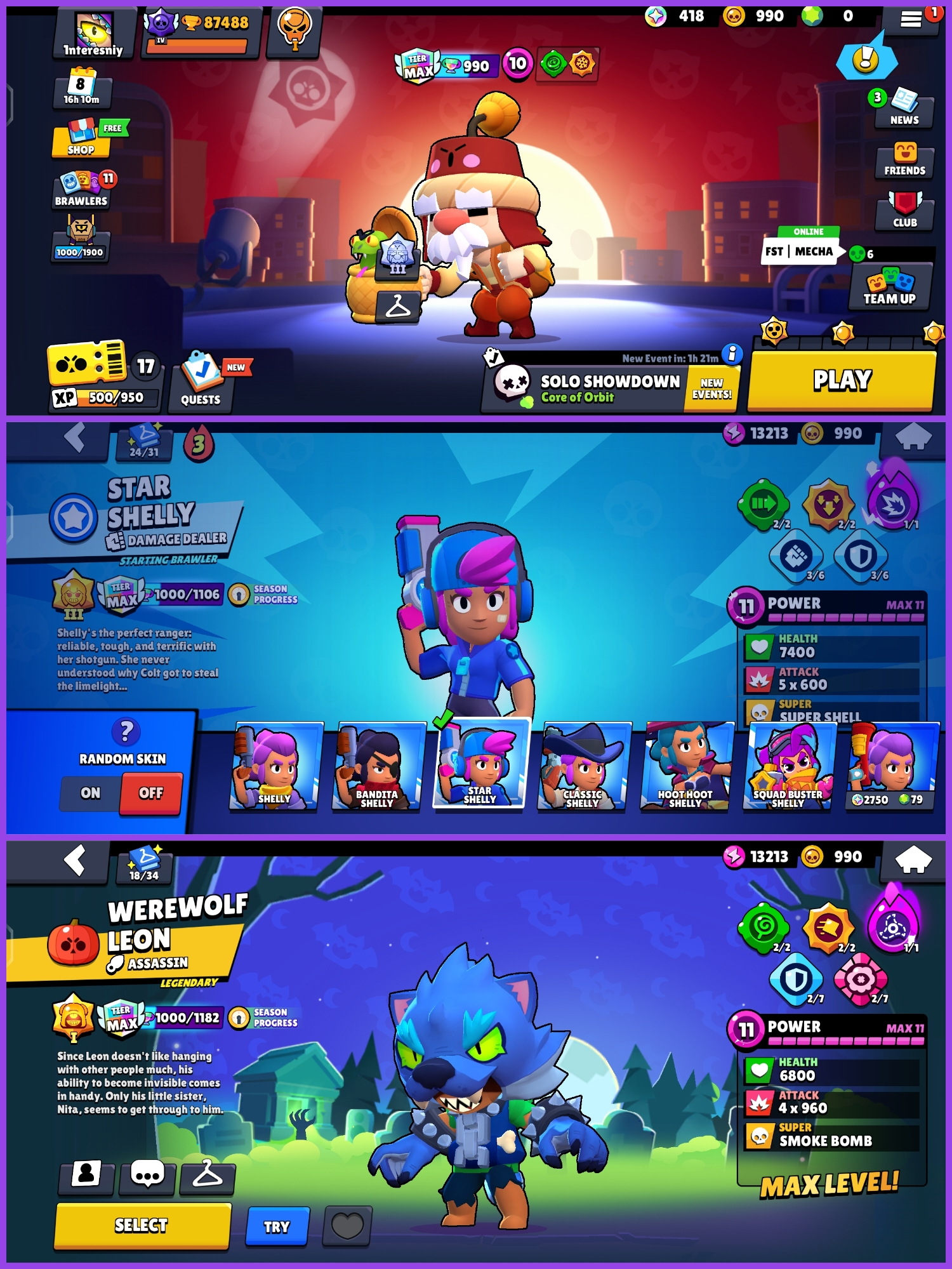🔥 STACKED 🪬 STAR SHELLY 🌙 91,000 🏆TROPHIES 🪬 SOLAR FAME ✨ 16 TITLES 🪐 20K 3V3 WINS 😈 2019 OG ACCOUNT 🎯 13 LEGENDARY SKINS 💎270+ SKINS 🪐 MERCHANT GALE 🥇 MECHA PALADIAN SURGE 🫶🏼 WEREWOLF LEON (BLUE) 🚚 🪬