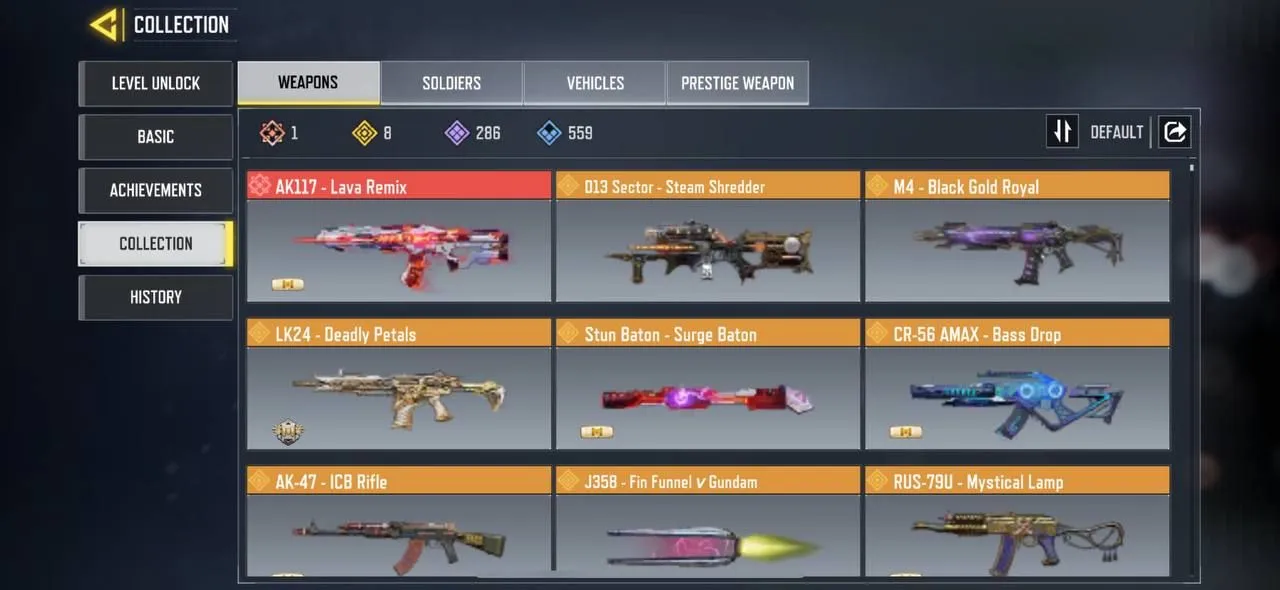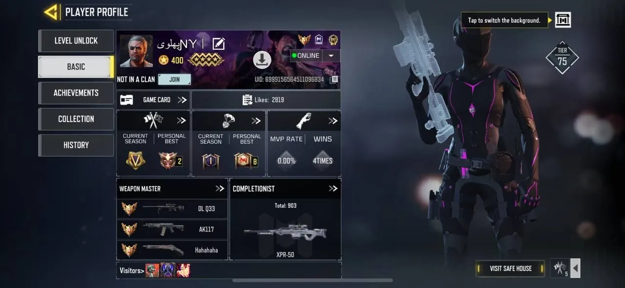 iOS Android 🛍️ Level 400 🌐 Rank Grand Master 🏆 286 Epic 🧨 8 Legendary 🎯 1 Mytich 🧩 123 Epic Soldier 🔥 Code563