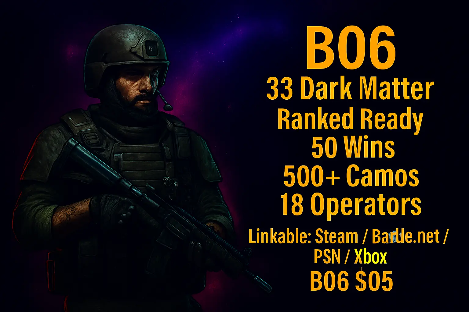 🌟 Advanced BO6 Dark Matter Account – Prestige 1 Level 55 | 33 Dark Matter Weapons | 18 Operators | 500+ Camos | Fully Linkable Across Platforms