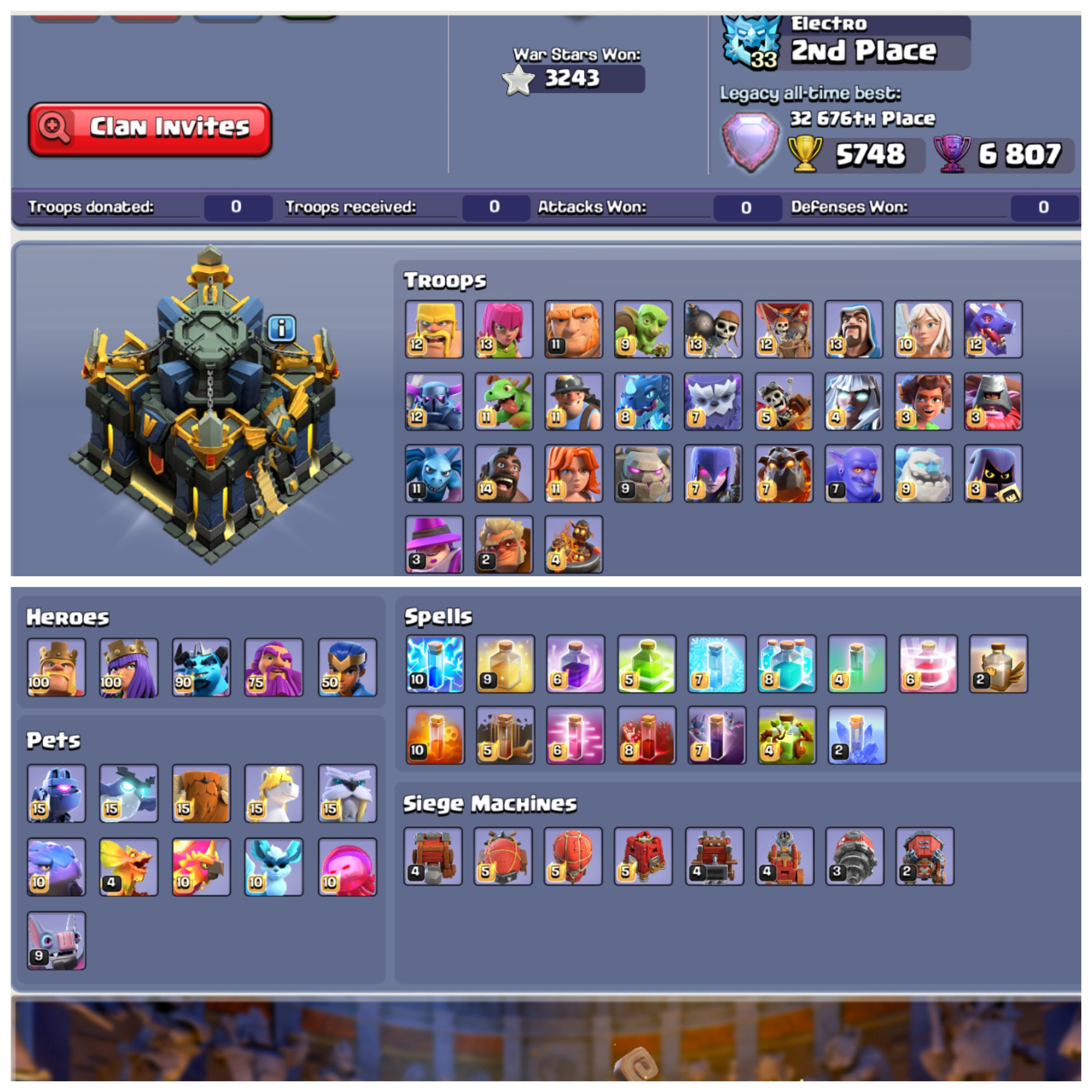 💎 {10300+ Gems} TH 17 Max Account 🧠 XP 261 ✨ Name Changeable 🛡️ Rare All 13 Epic Equipments 💥 Max Profile 🏰 Max Base 🎁 Fully Stacked ⚡ Instant Delivery