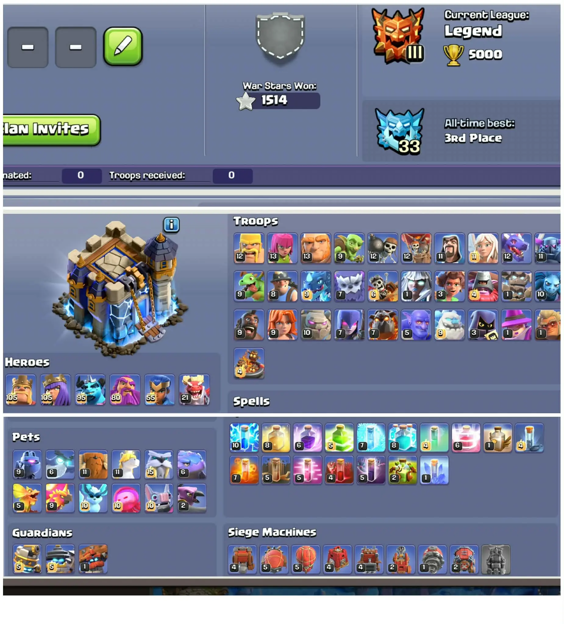 [16 Epic Equipment]➤➤Th18 Full Max Pre Update➤➤Gold Pass Actived➤➤Legend Leauge➤➤Max Helper Hut➤➤Full Base Decorated
